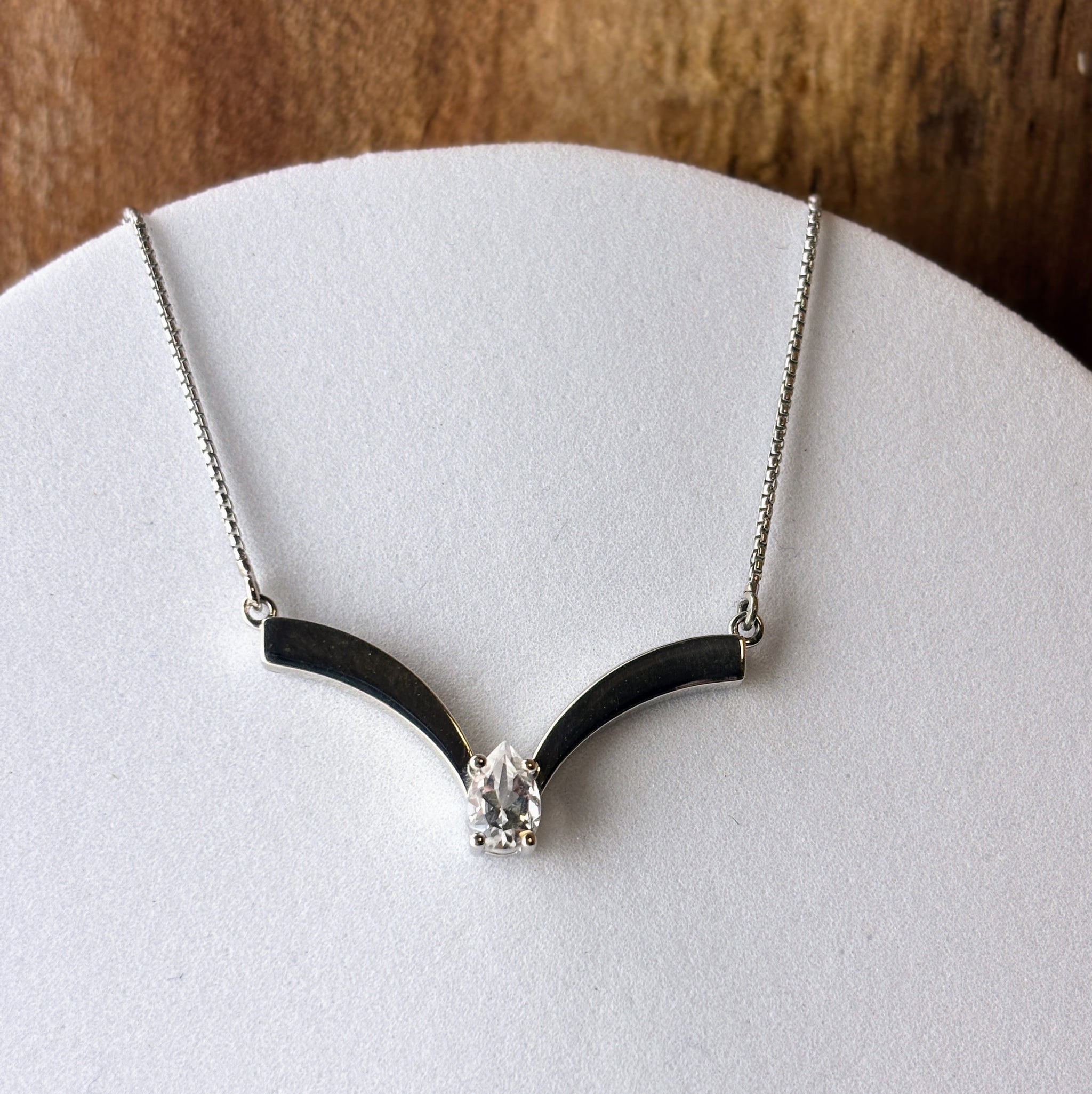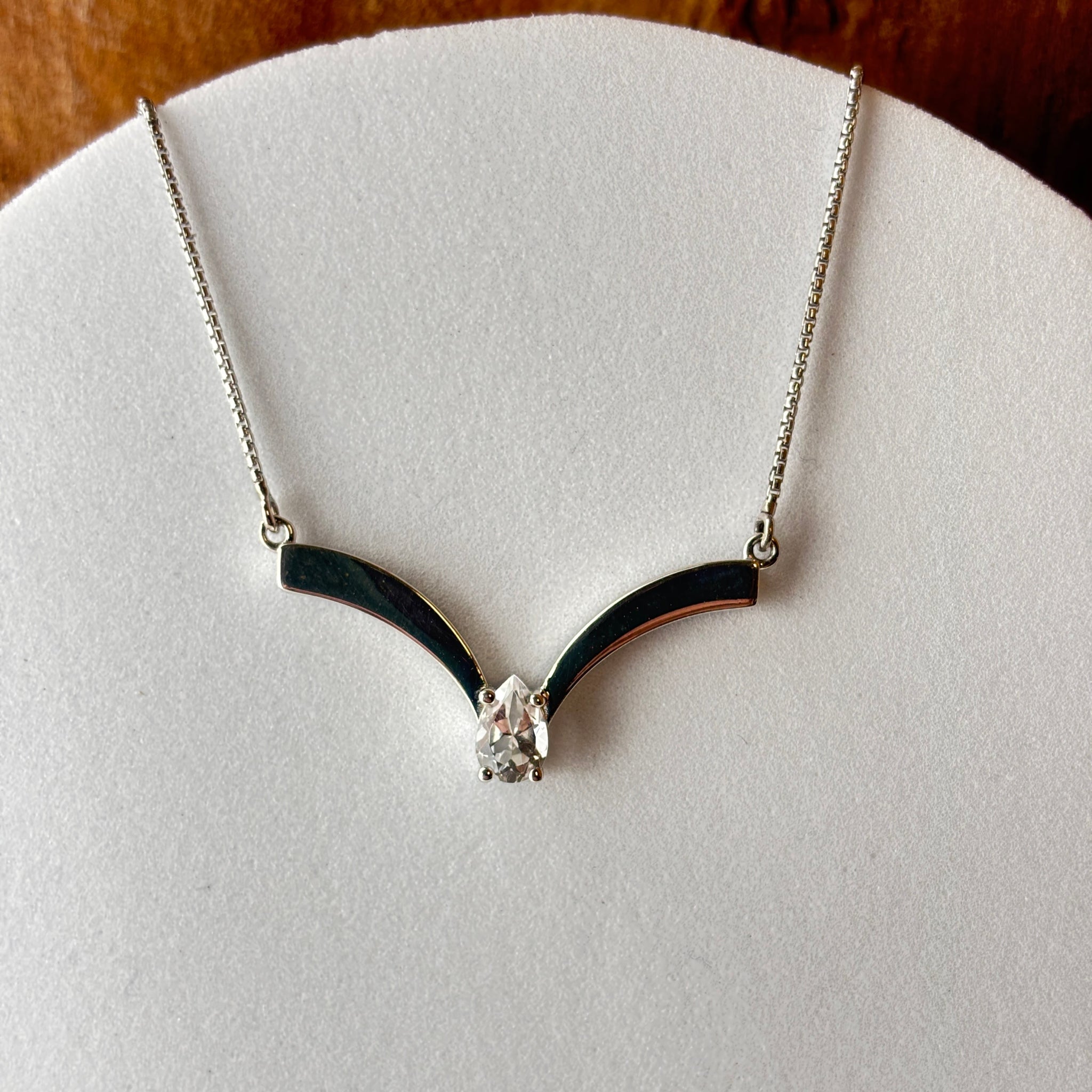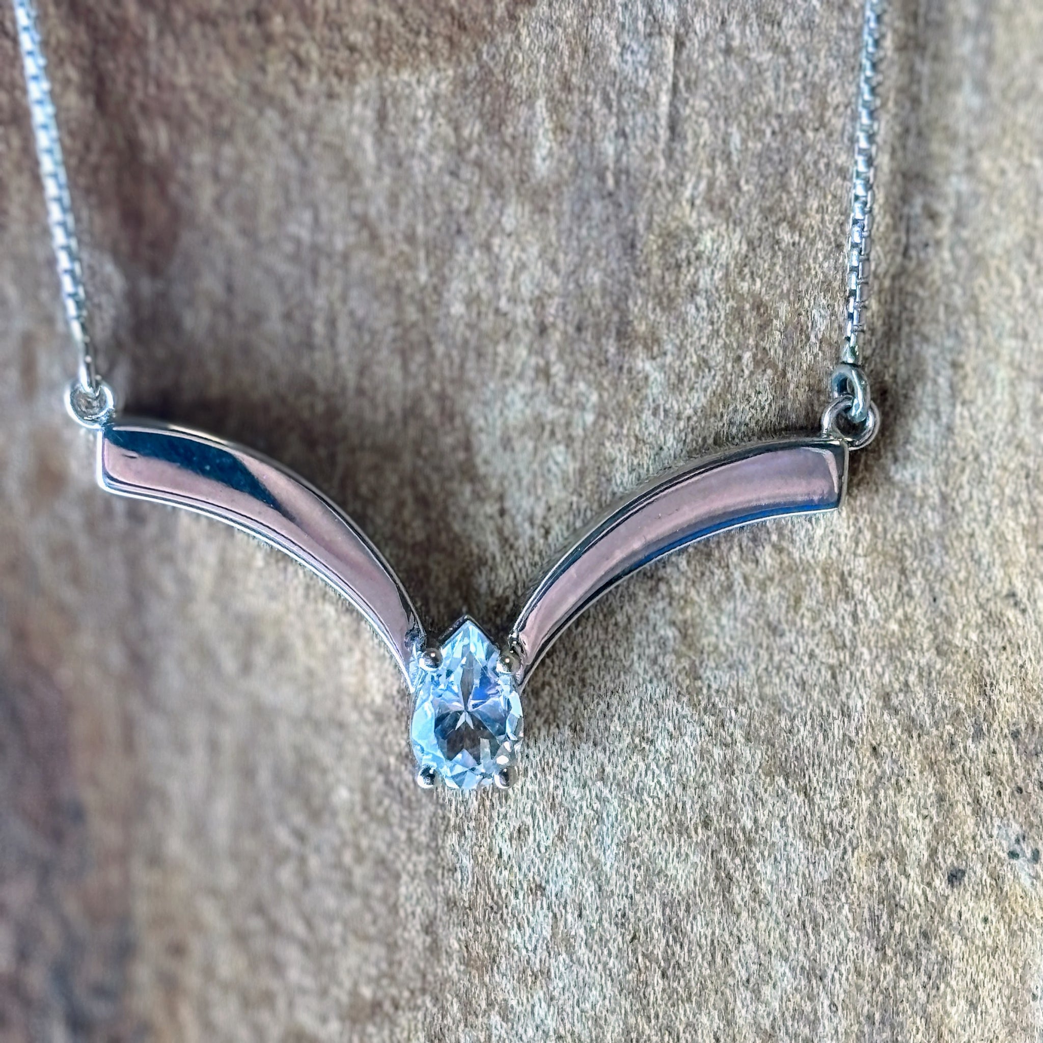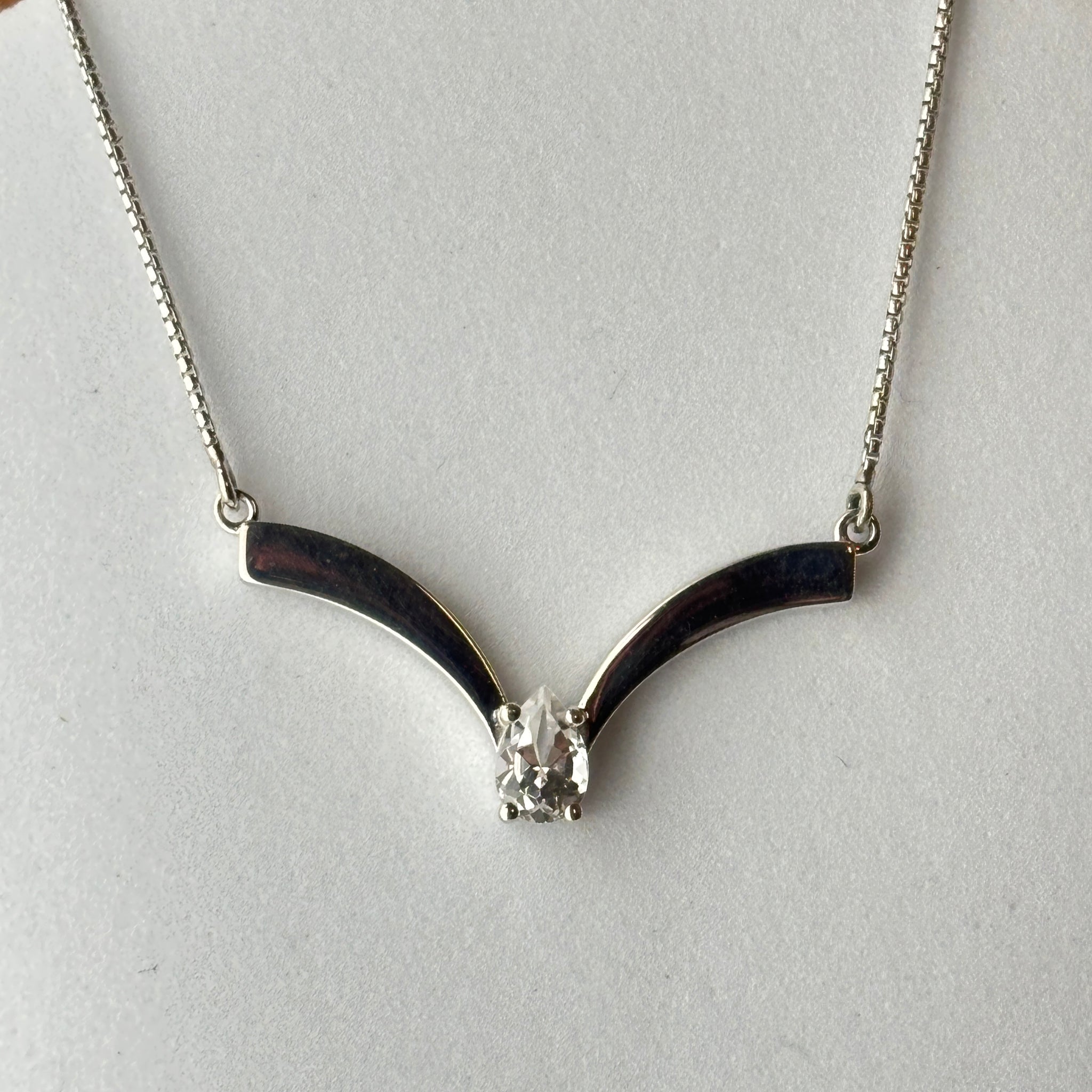 Pendentif de Cristal de quartz polis du Québec no.112 Le cristal est extrait de la mine du Lac-Saint-Jean par un prospecteur-cristallier Le fil d’argent soudé met en évidence la...