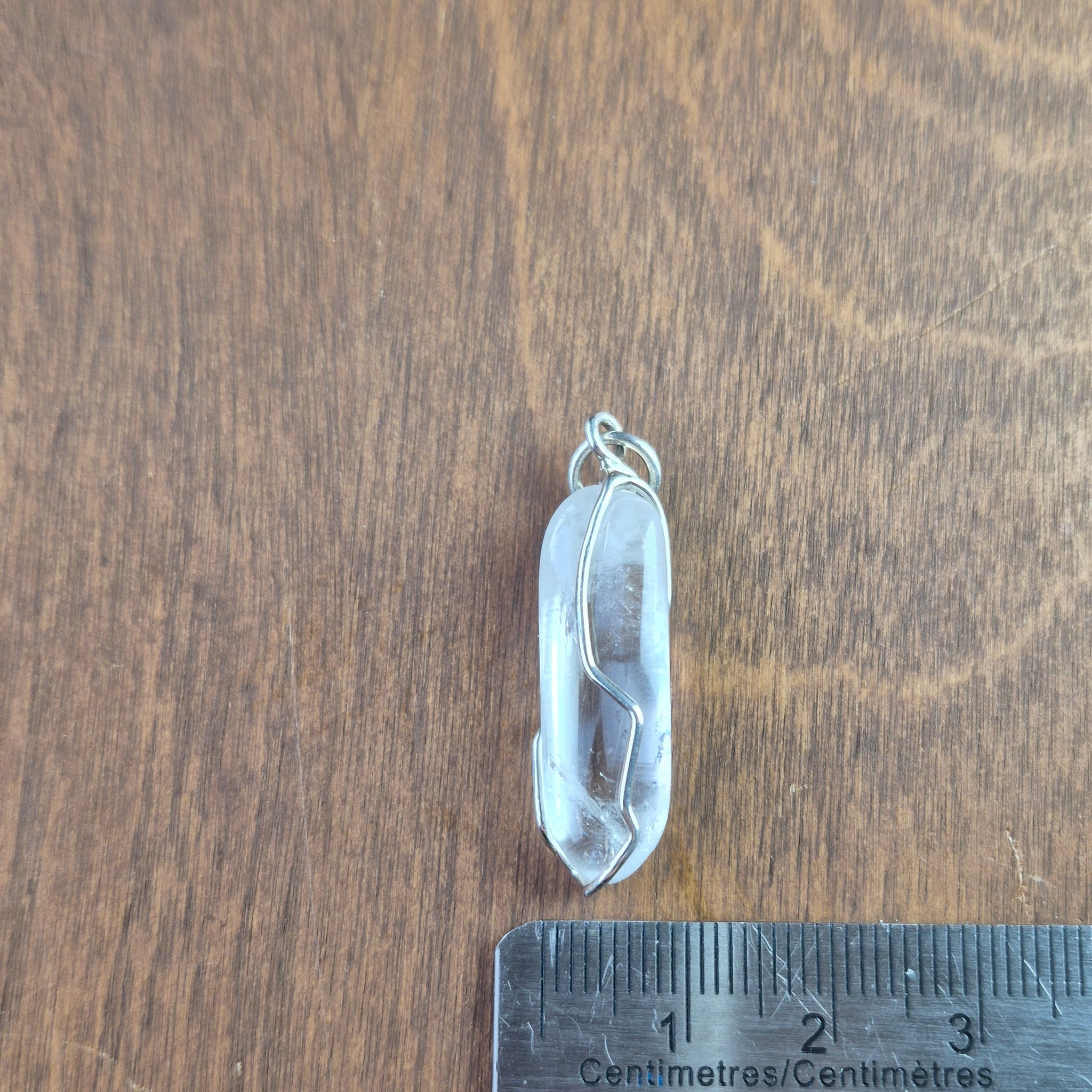 Pendentif en argent Cristal de quartz naturel AAA Cristal de quartz mine du Québec Pendentifs cristal de quartz 2 pointes( biterminé )de haute qualité teinte cristal de roche légèrement...