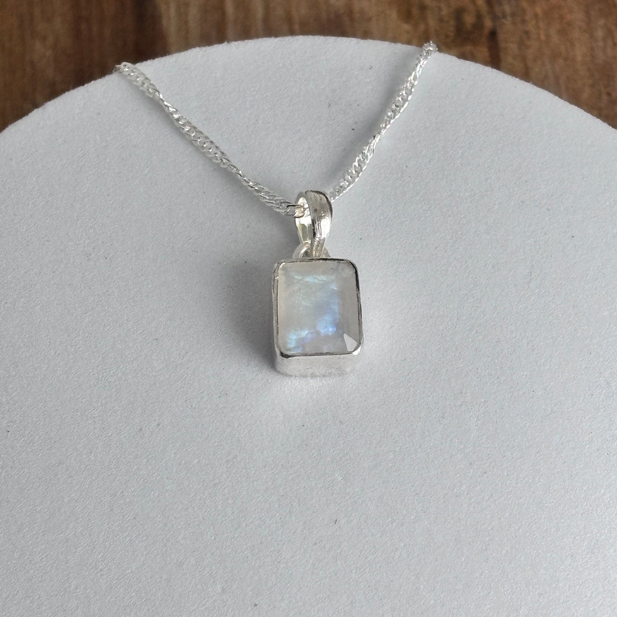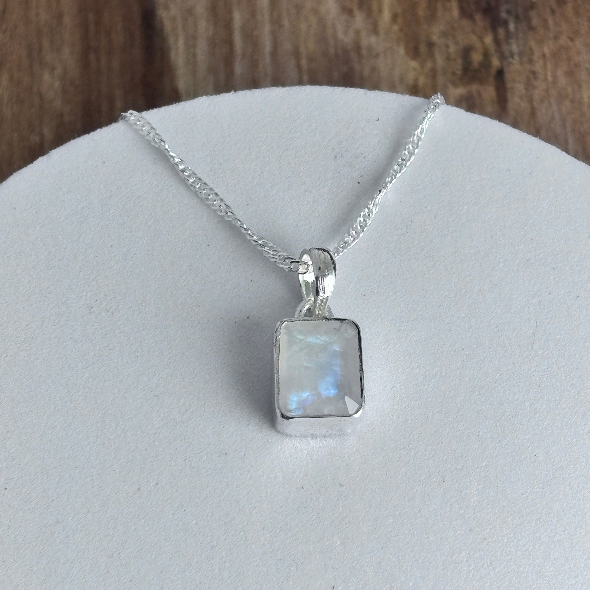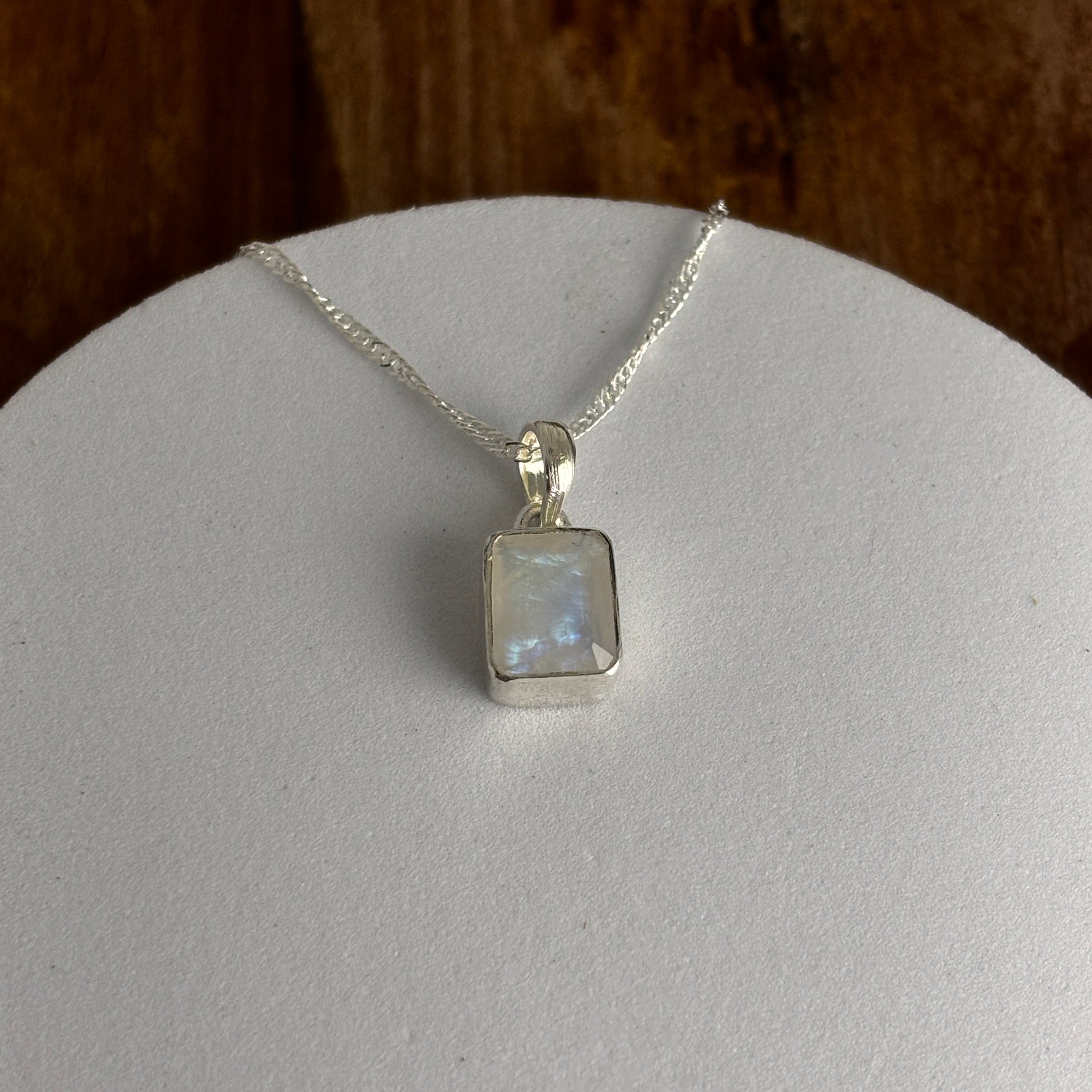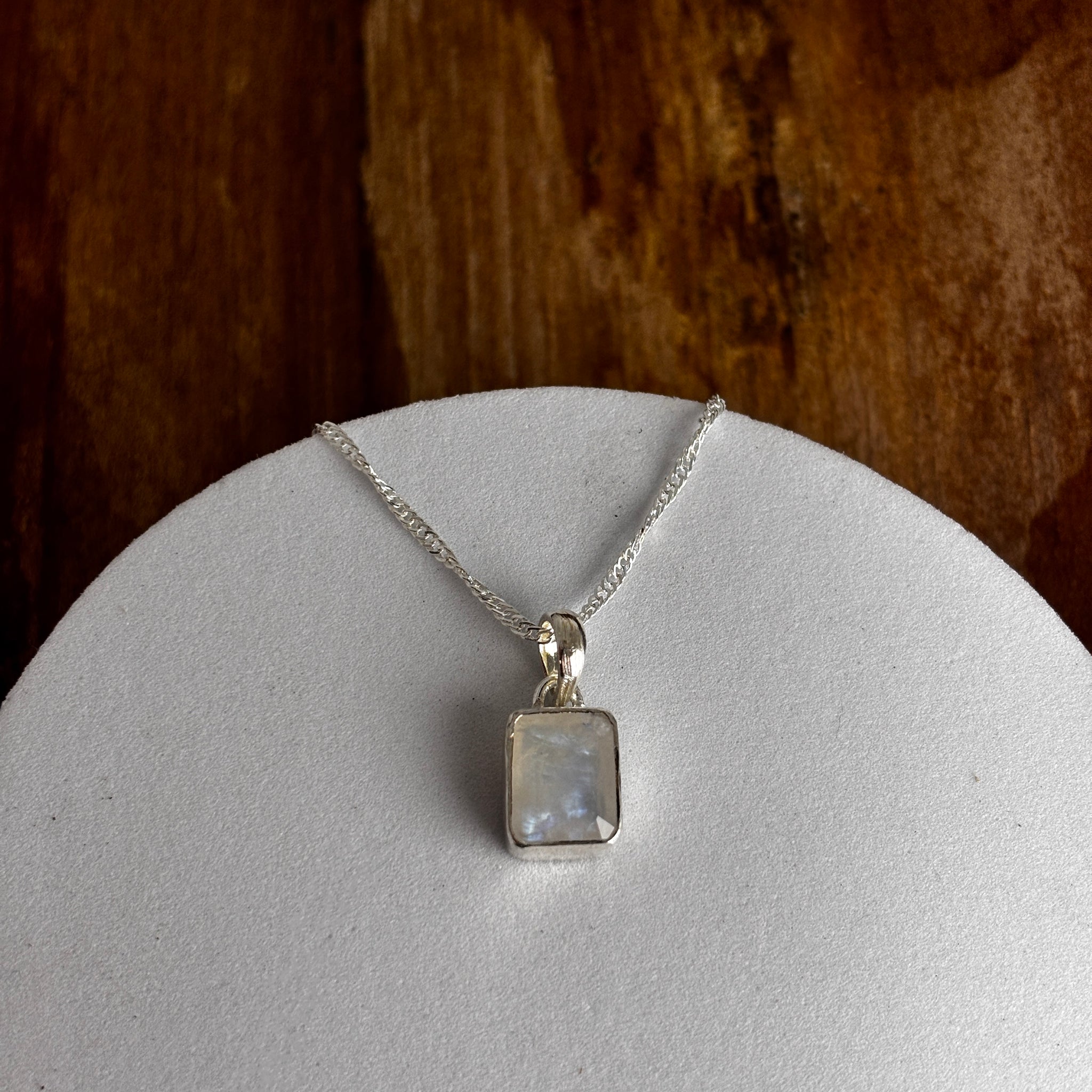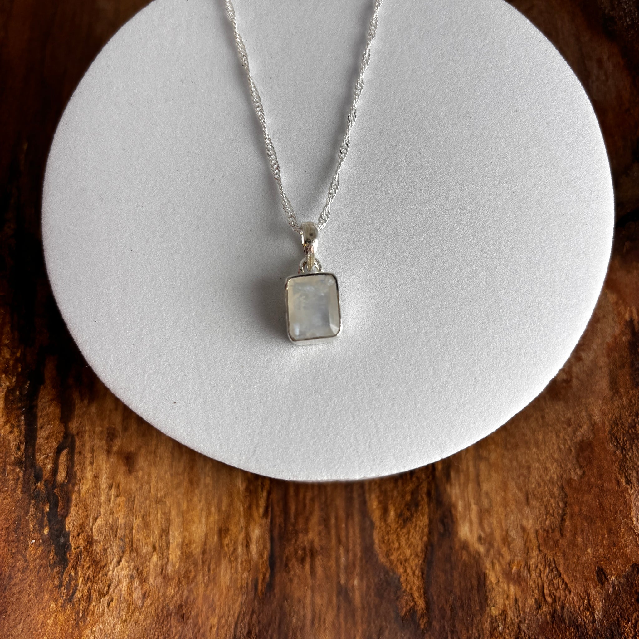 Pendentif pierre de Lune La pierre de lune, scientifiquement appelée orthoclase ou hécatolite, fait partie de la famille des Feldspaths Elle a une teinte transparente à blanche, jusqu’à des reflets...