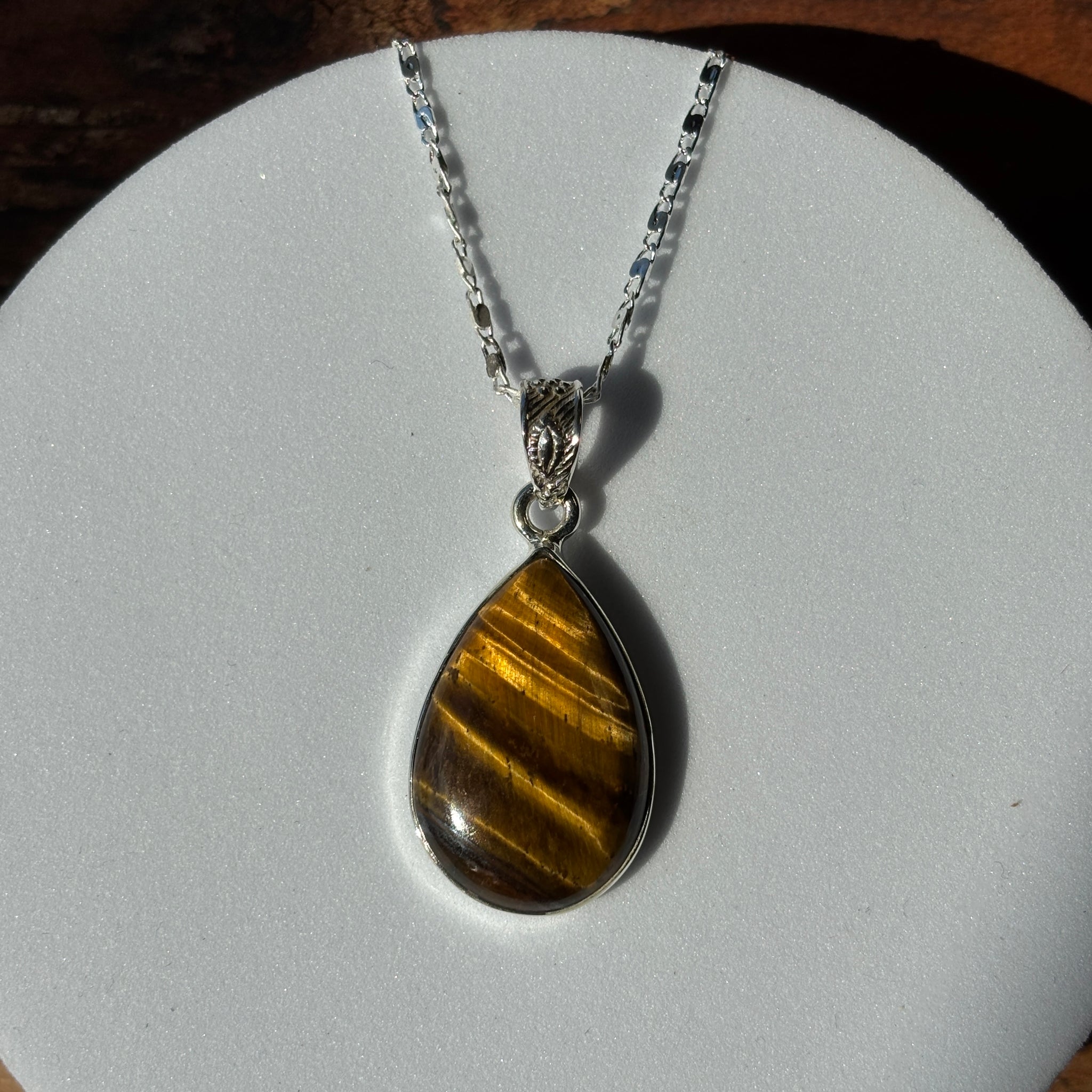 Pendentif Œil-de-tigre argent 925 L’œil-de-tigre est une variété de quartz de couleur jaune, brun et or. Une fois polie elle a une ressemblance avec l’œil de l’animal, d'où le nom...