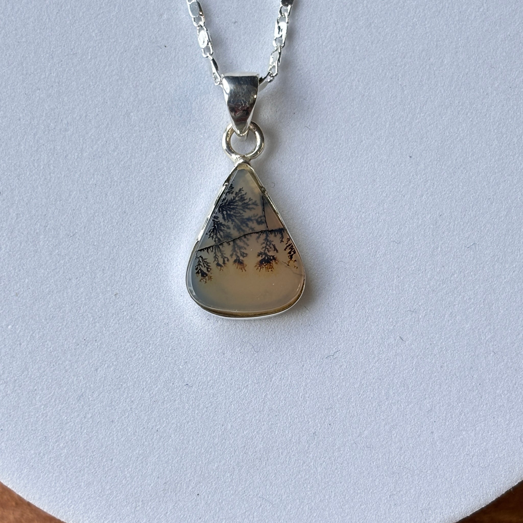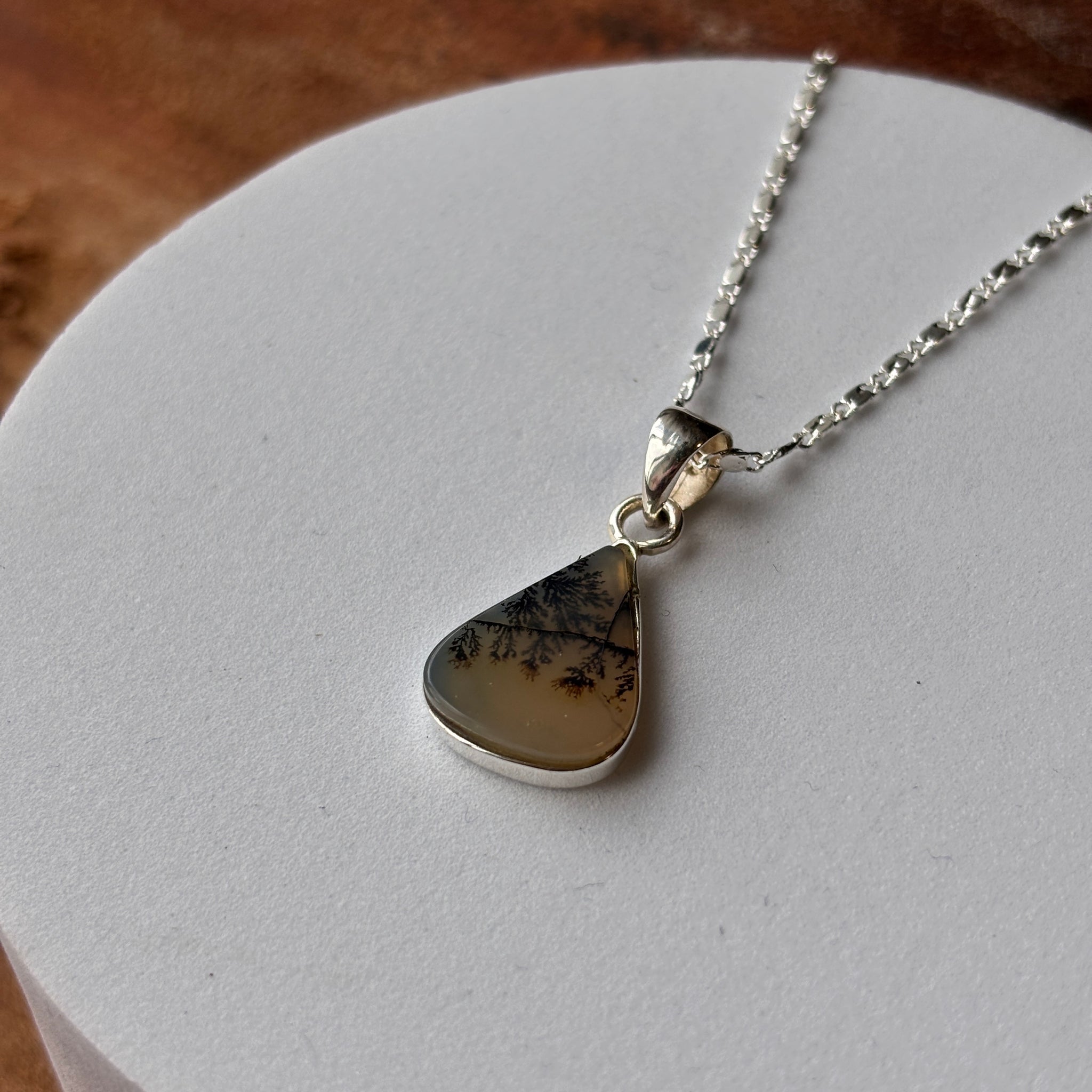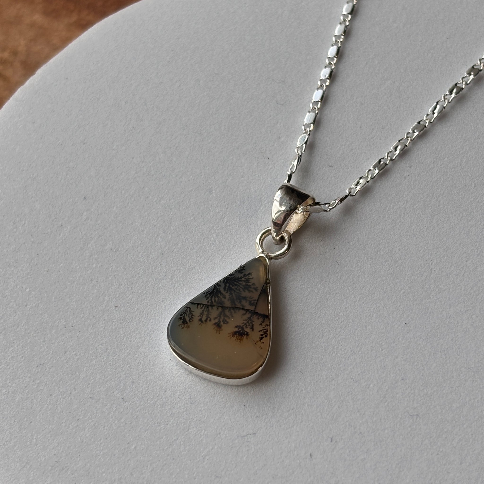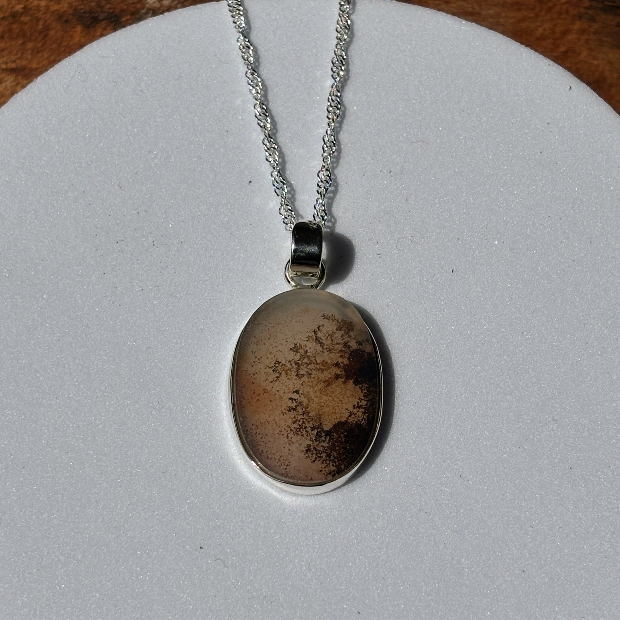 Pendentif agate Scénique Découvrez la beauté naturelle et subtile de ce Bijou d'Agate Scénique. Cette variété de Calcédoine nous permet de voir les magnifiques dessins naturels qui évoquent des paysages. Légèrement...
