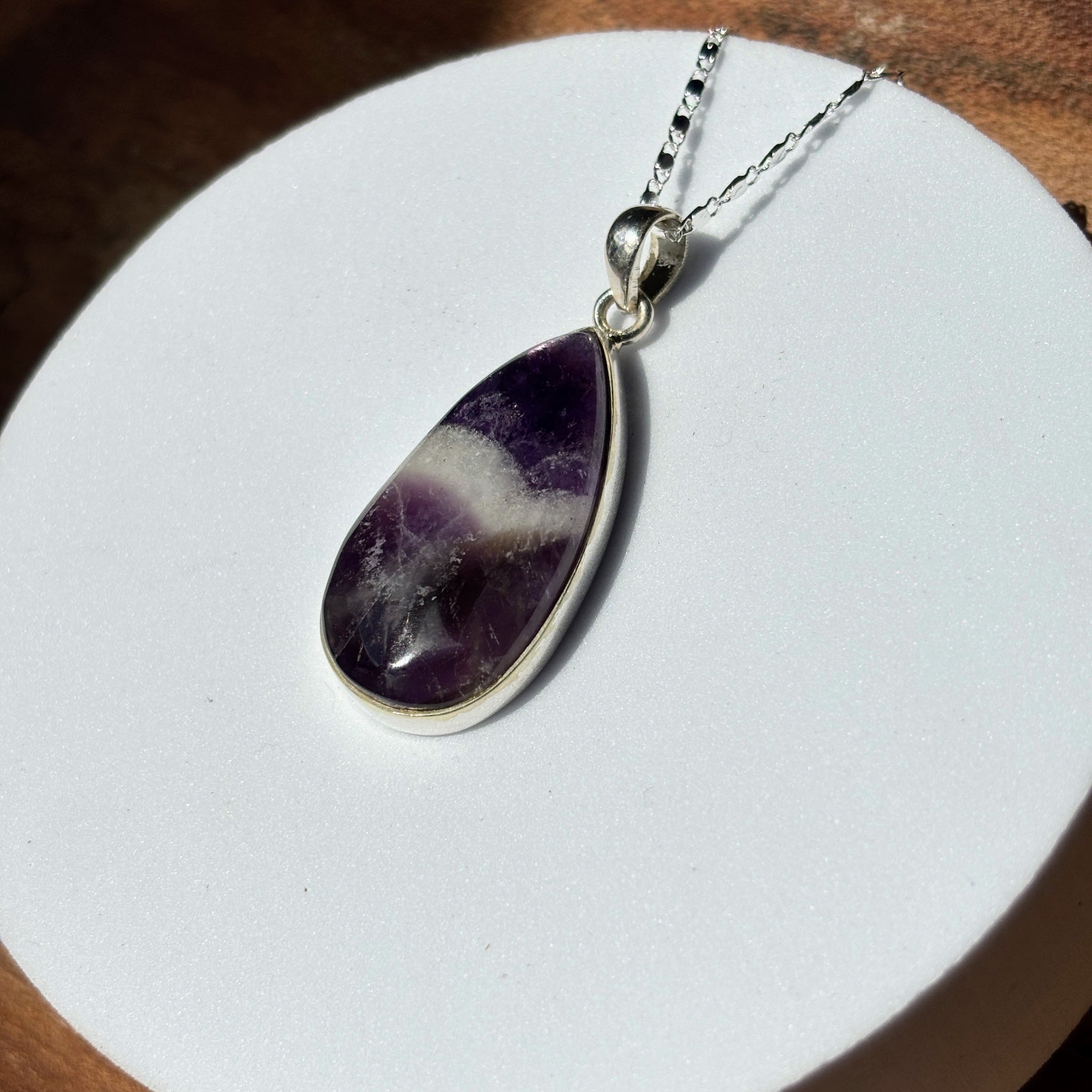 L’améthyste chevron, reconnaissable à ses bandes en zigzag surnommées « dents de chien », est une améthyste fusionnée avec du quartz blanc. Cette pierre unique se décline en teintes qui...