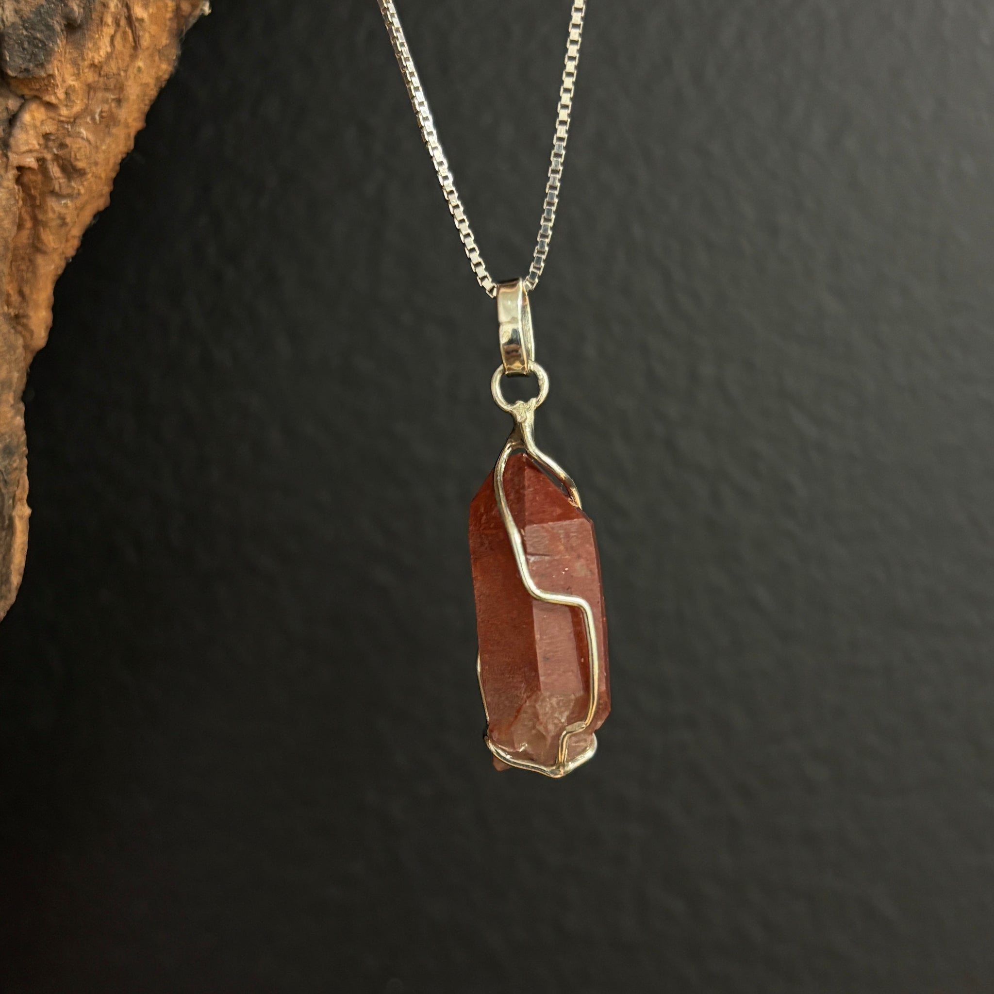 Pendentif Filé Argent Cristal no.401 Cristal de quartz hématoïde Pierre éthique livraison 3 -5 jours ouvrables GLS Bijou de cristal de quartz biterminé ( 2 pointes), à l’état naturel,...