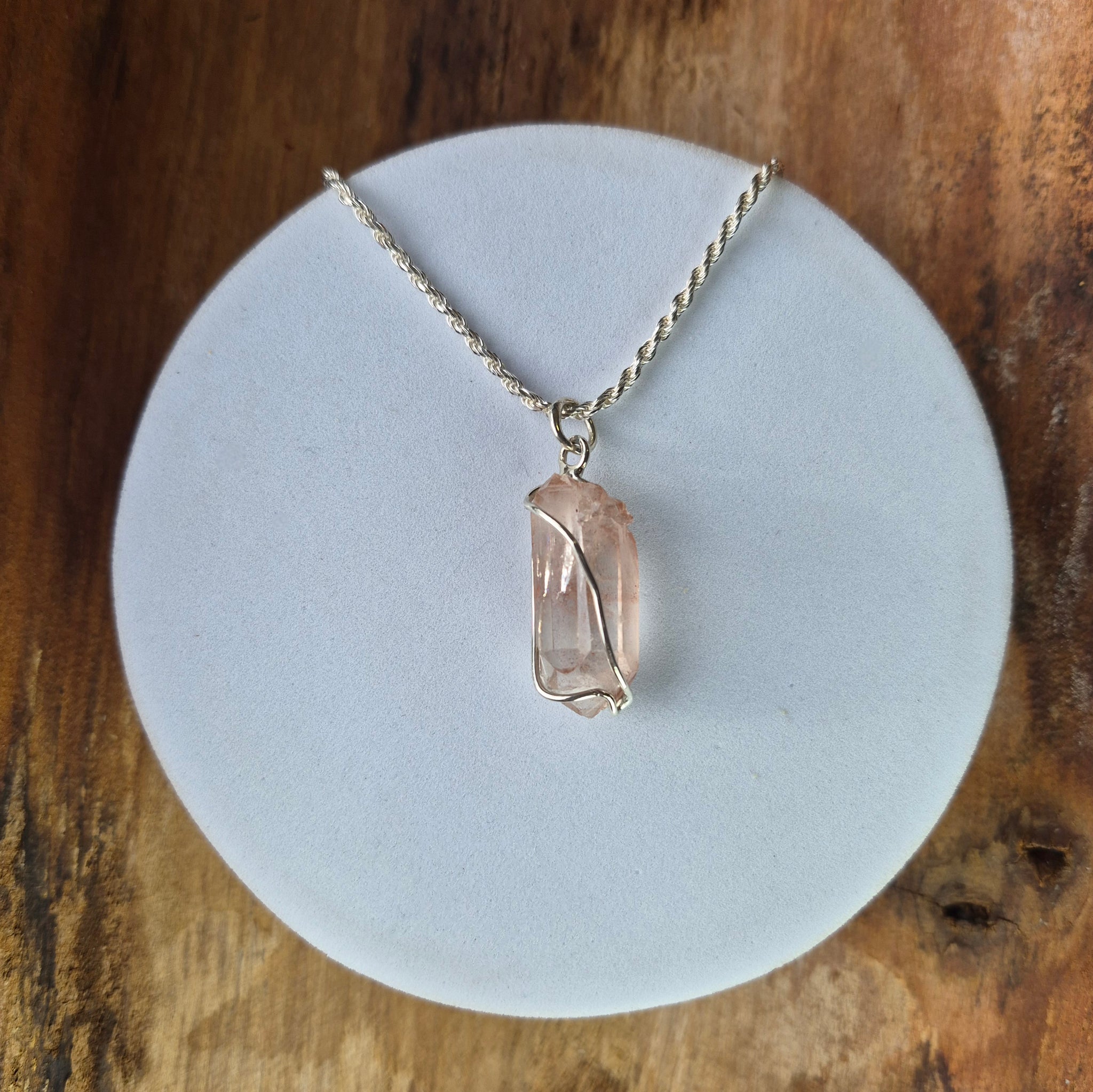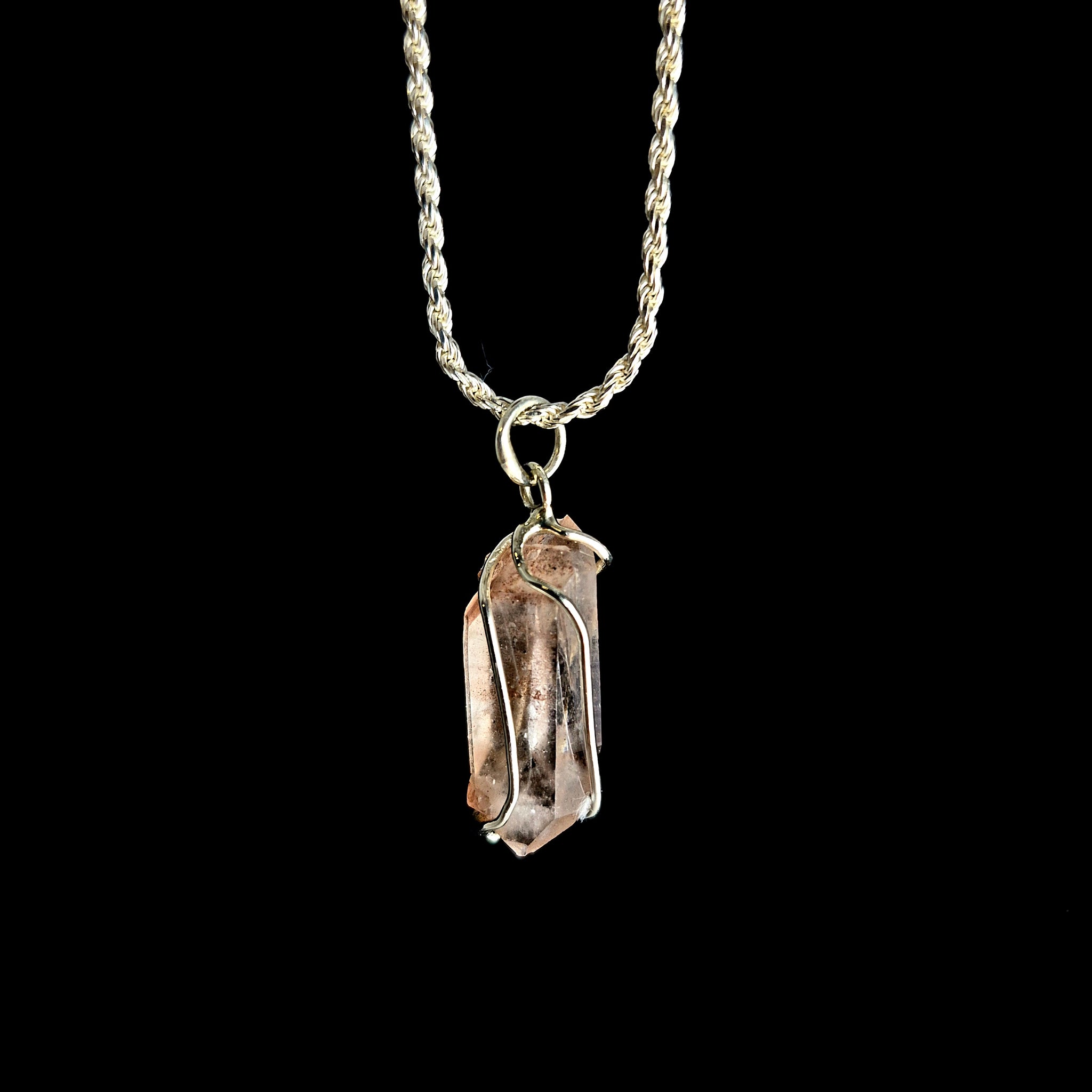 Pendentif en argent Cristal de quartz naturel Cristal de quartz, mine du Québec Pendentifs cristal de quartz Lémurien de haute qualité, teinte tangerine. Les pointes de Cristal de quartz...