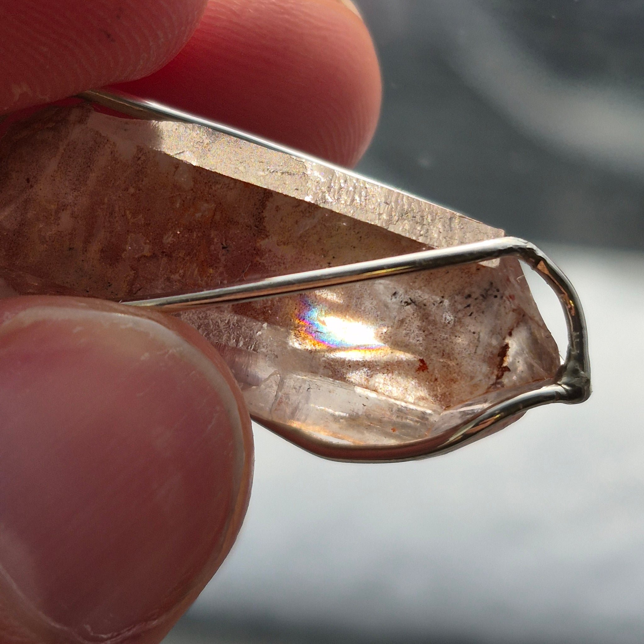 Pendentif de Cristal de quartz polis du Québec avec Intrusion c no. 77 Bijou de cristal de quartz poli avec arc en ciel , à l’état naturel, entouré d’un...