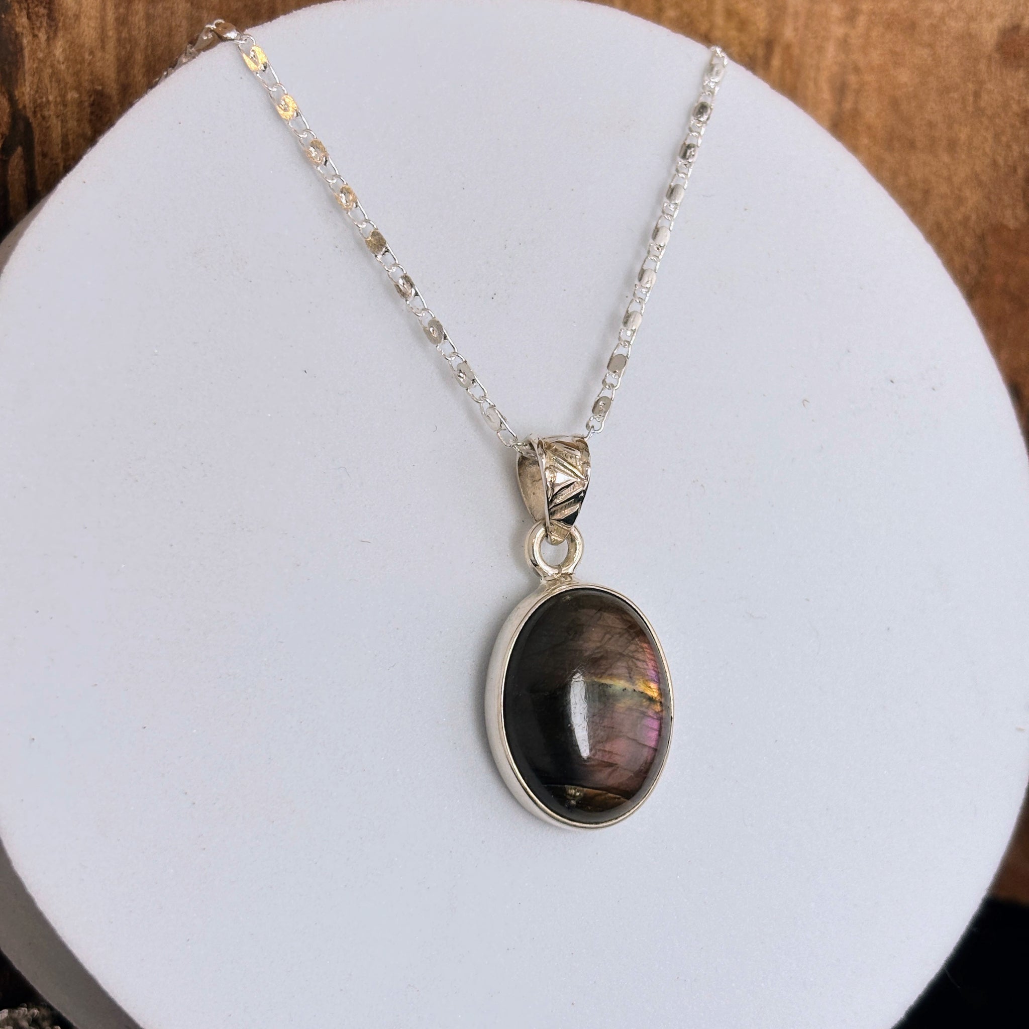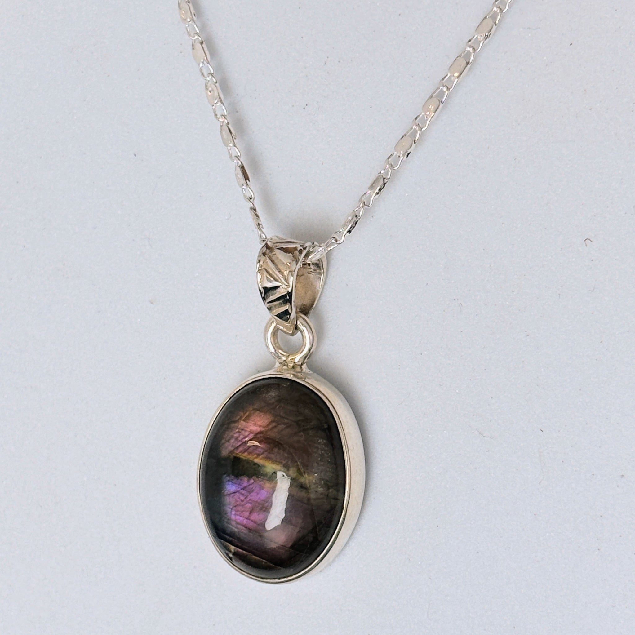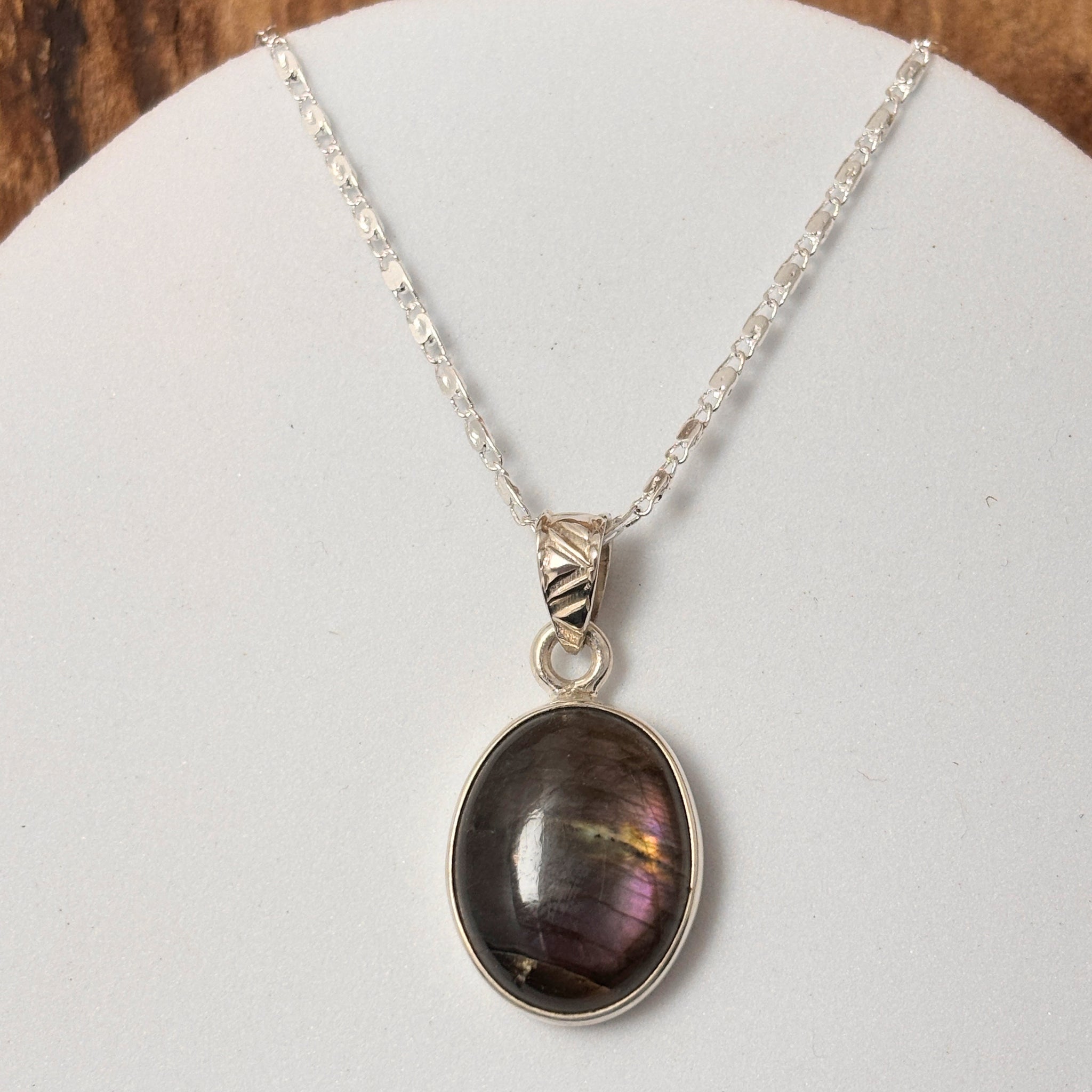 Pendentif Hypersthène du Lac-Saint-Jean Magnifique bijou dont l’on peu observer en effet optique d'inclusions parallèles S'agencera parfaitement avec votre style! Chaine 20 po. Incluse La photo représente réellement le spécimen...