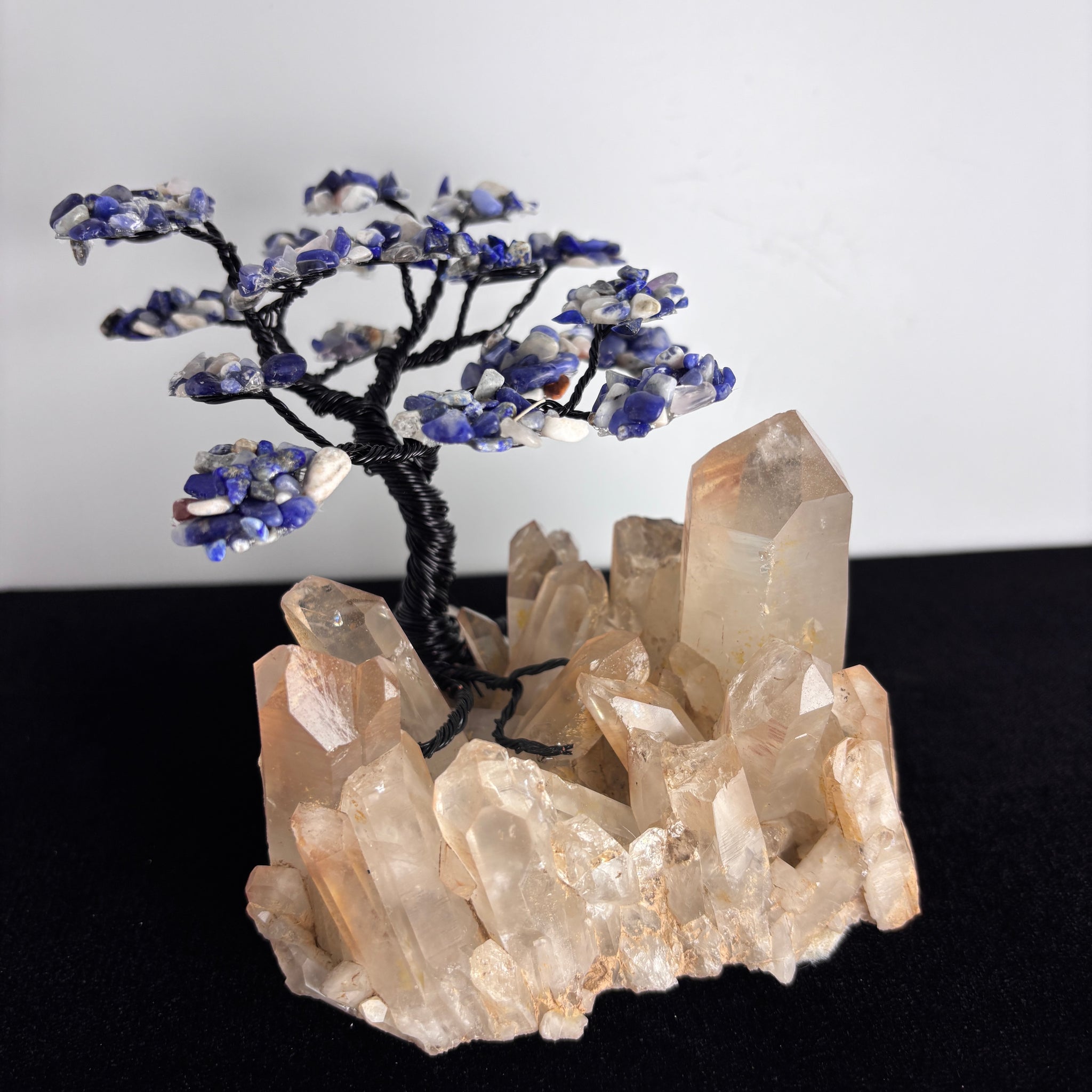 Arbre de vie no.160 Les arbres de vie sont tous faits à la main et reposent sur une matrice de cristal de quartz. Les matrices proviennent des parois d’une...