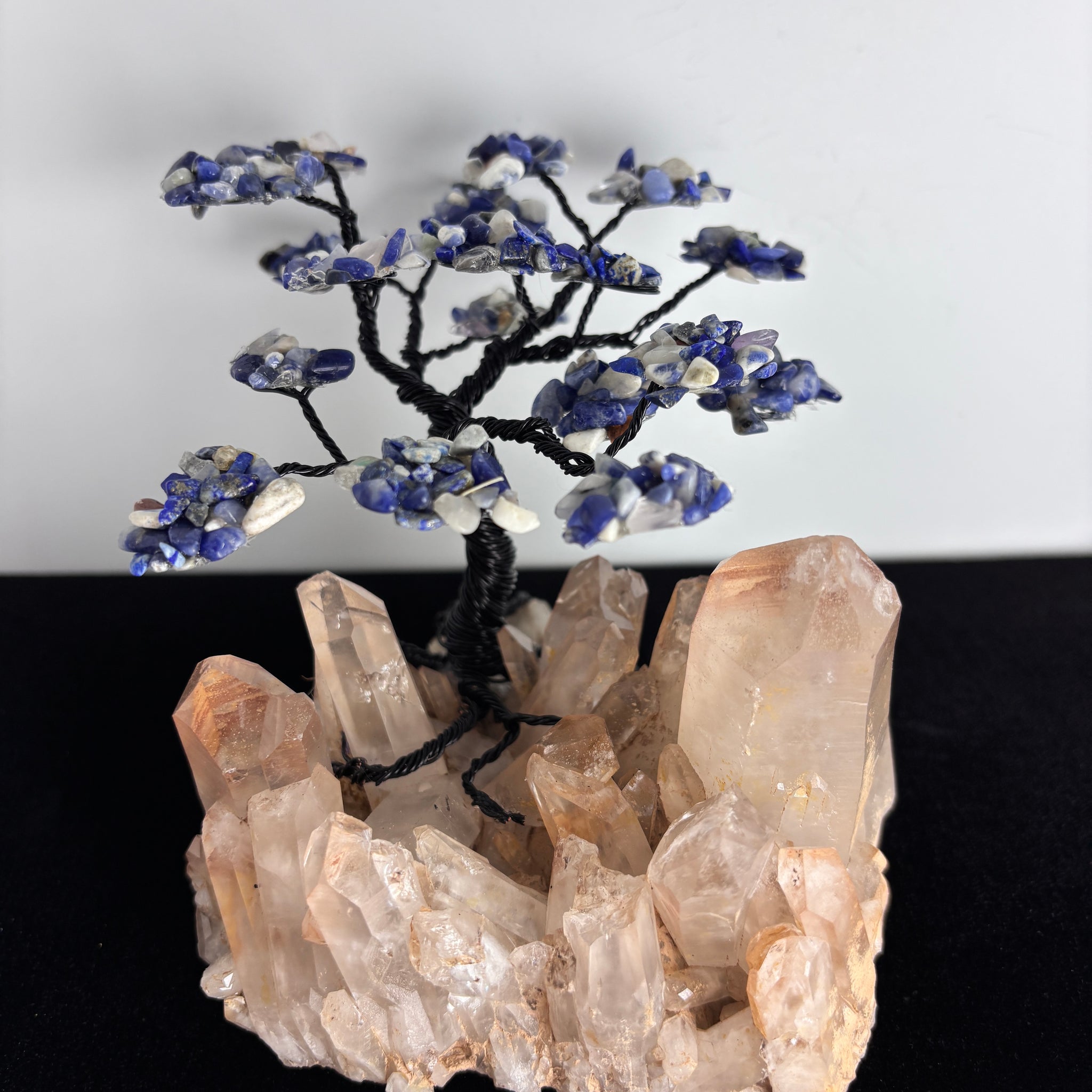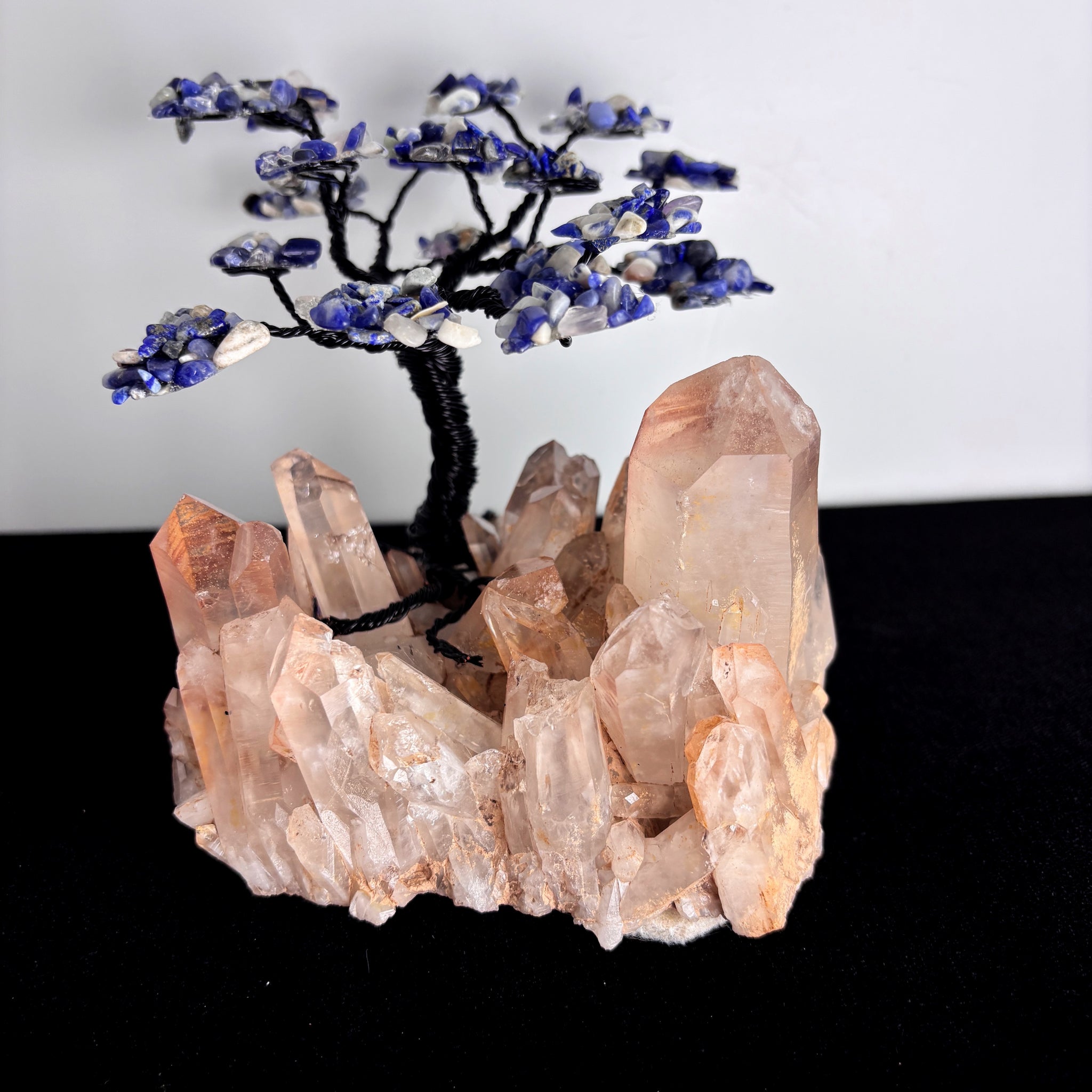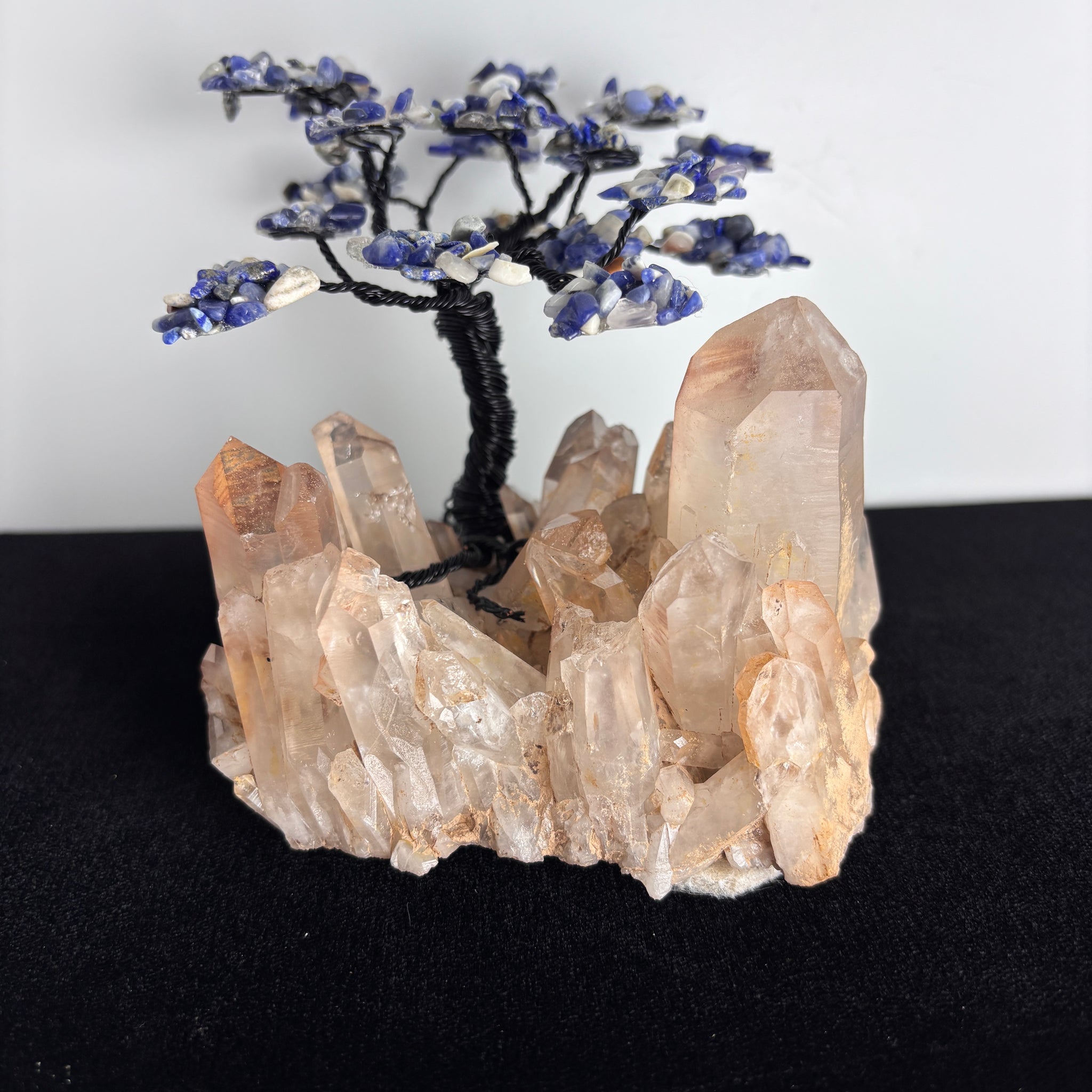Arbre de vie no.155 Les arbres de vie sont tous faits à la main et reposent sur une matrice de cristal de quartz. Le feuillage est constitué de pierres...