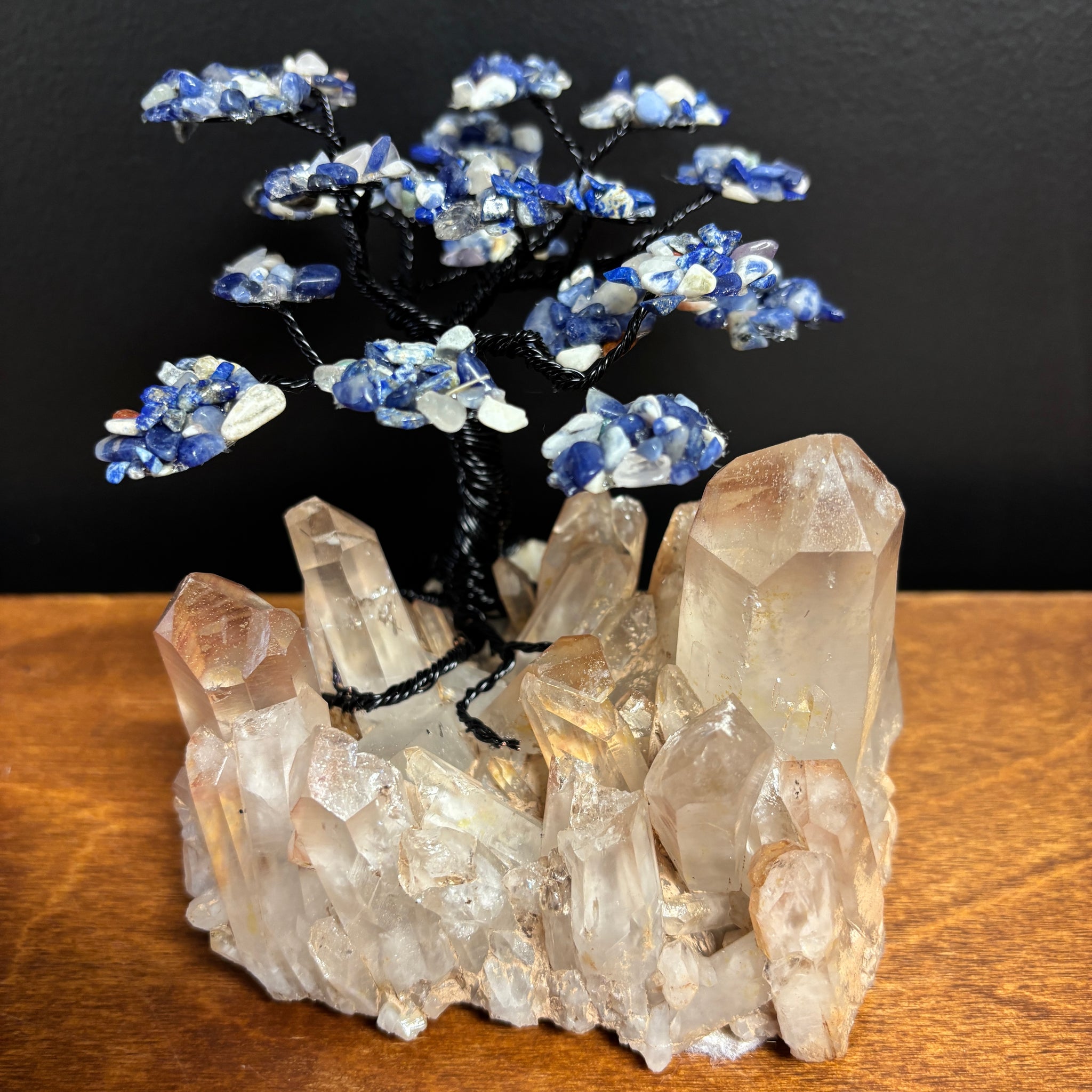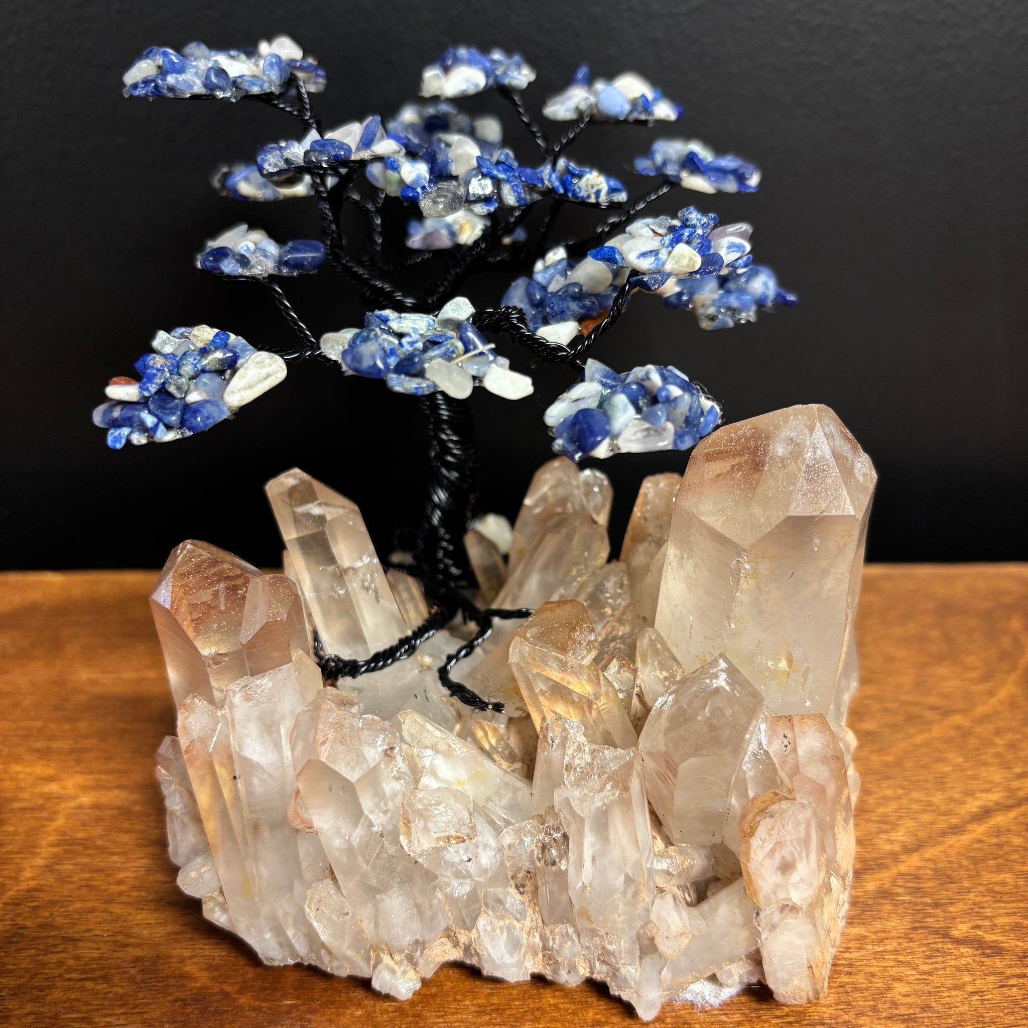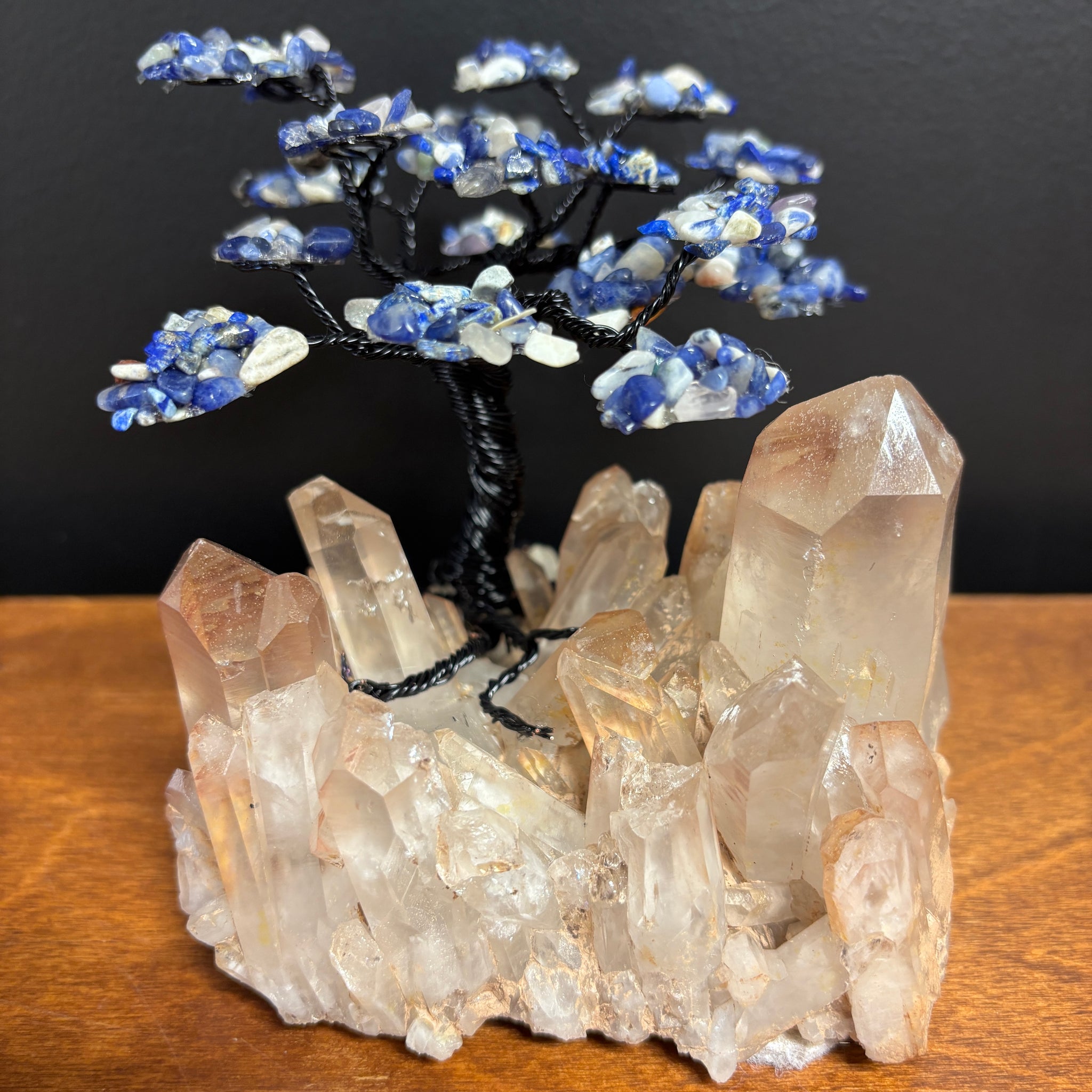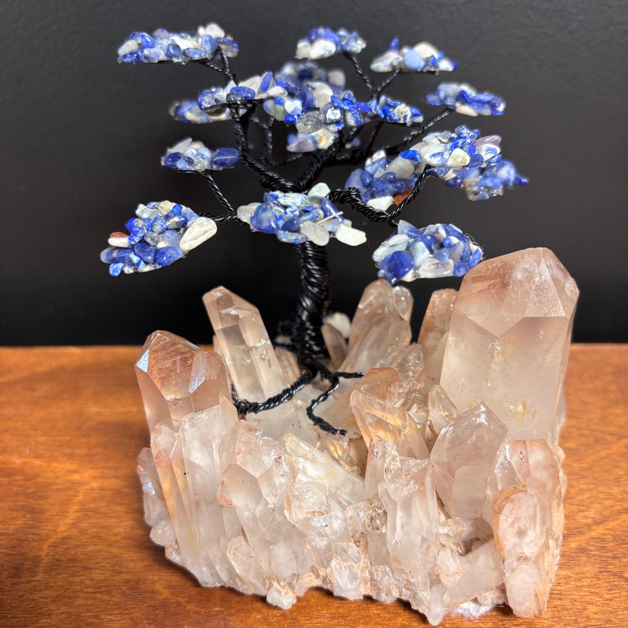 Arbre de vie no.155 Les arbres de vie sont tous faits à la main et reposent sur une matrice de cristal de quartz. Le feuillage est constitué de pierres...