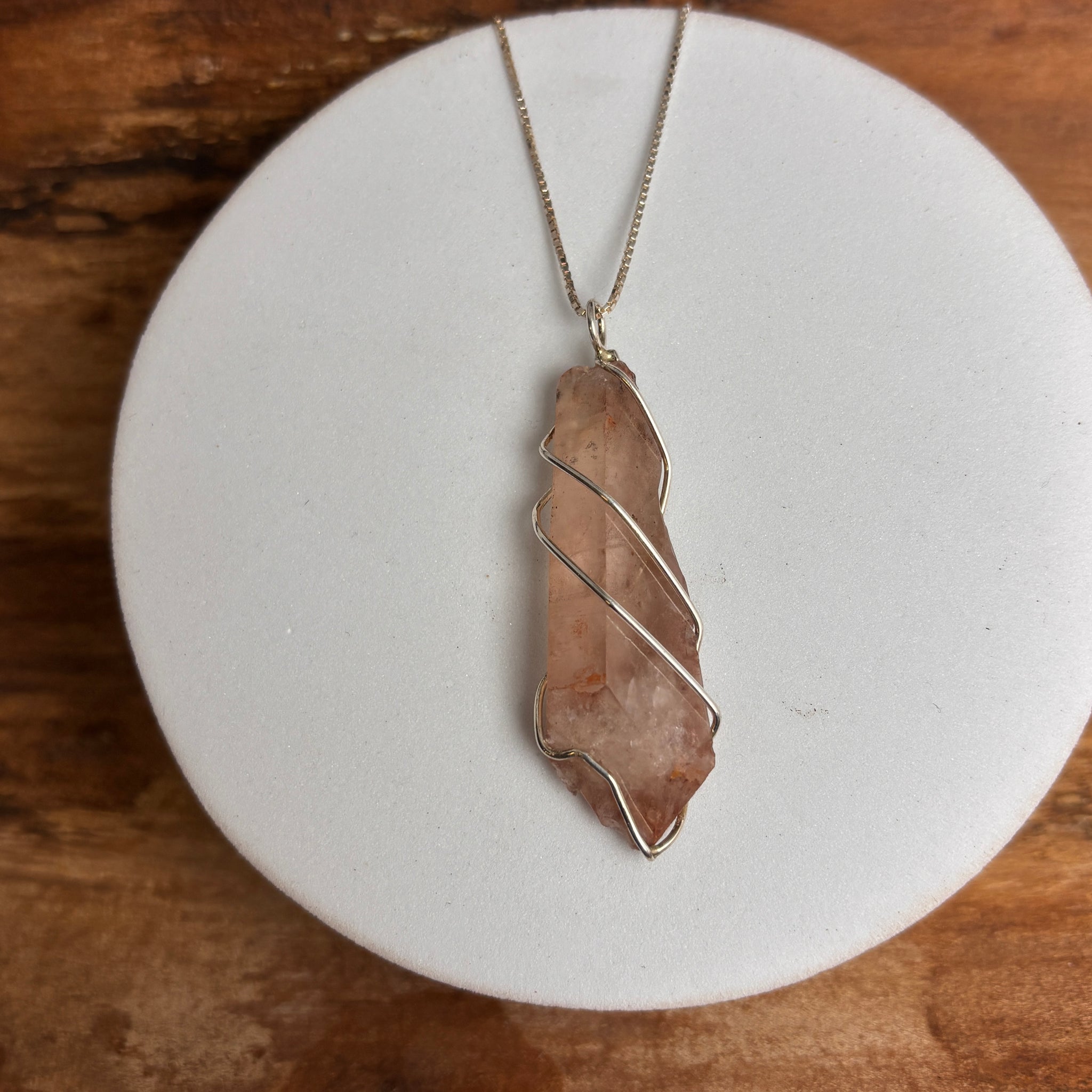 Pendentif en argent Cristal de quartz naturel AAA Cristal de quartz, mine du Québec Le quartz Lémurien présente sur certaines faces des stries parallèles Pendentifs cristal de quartz Lémurien...