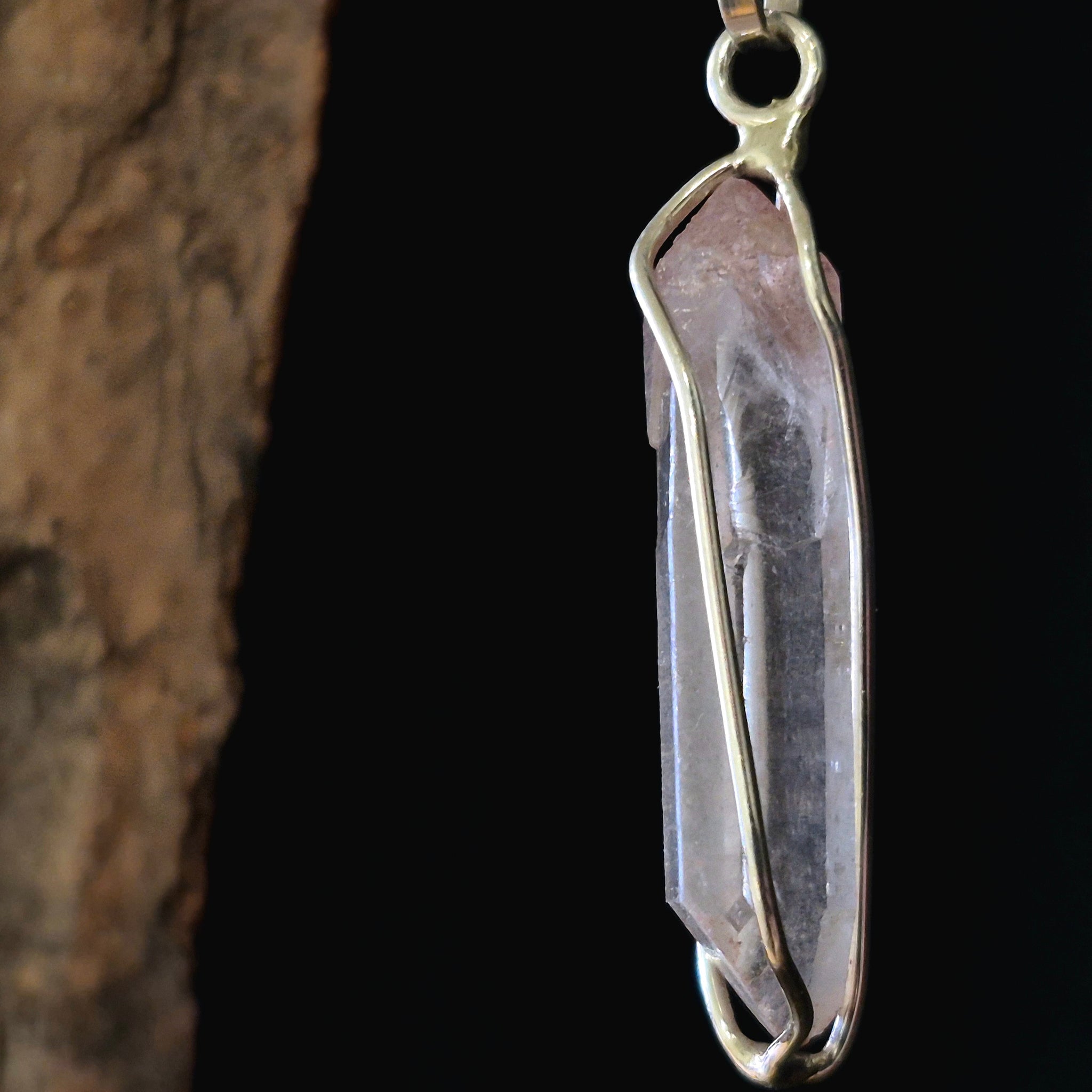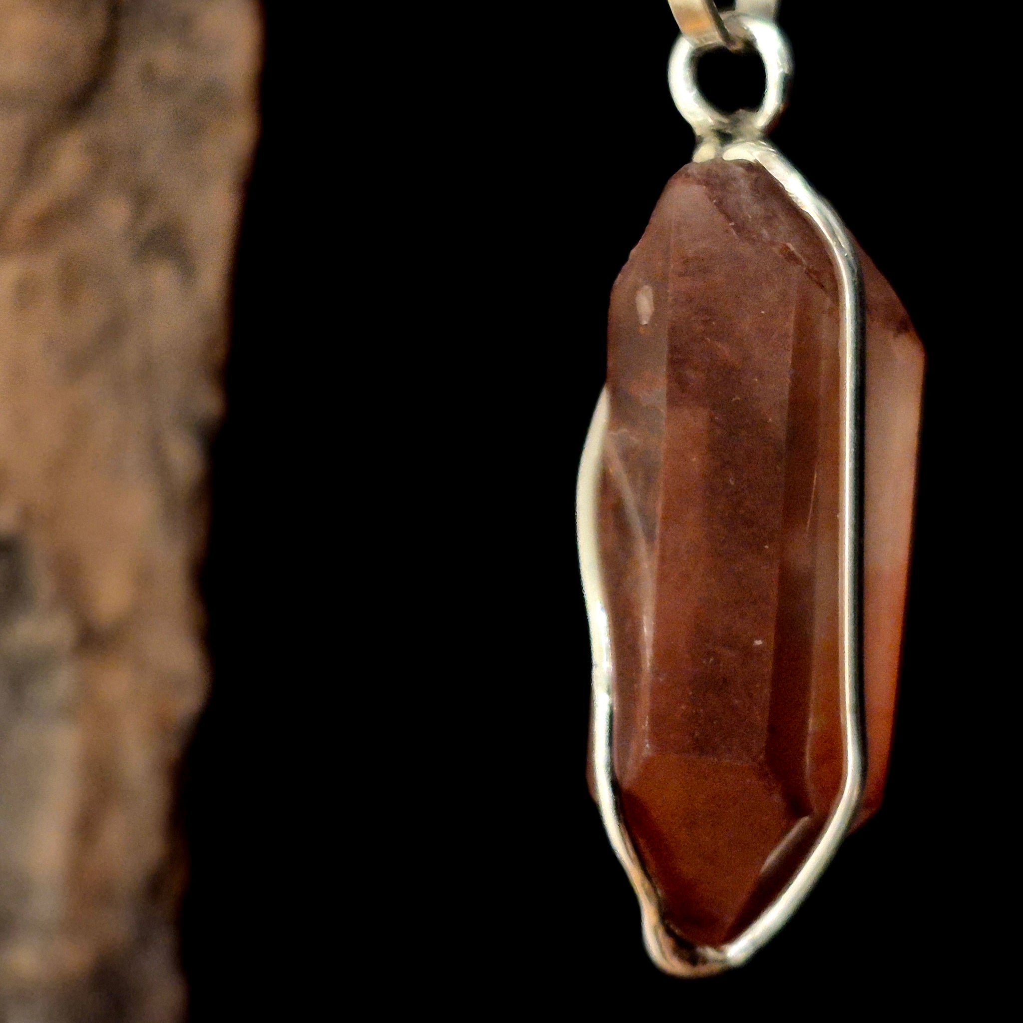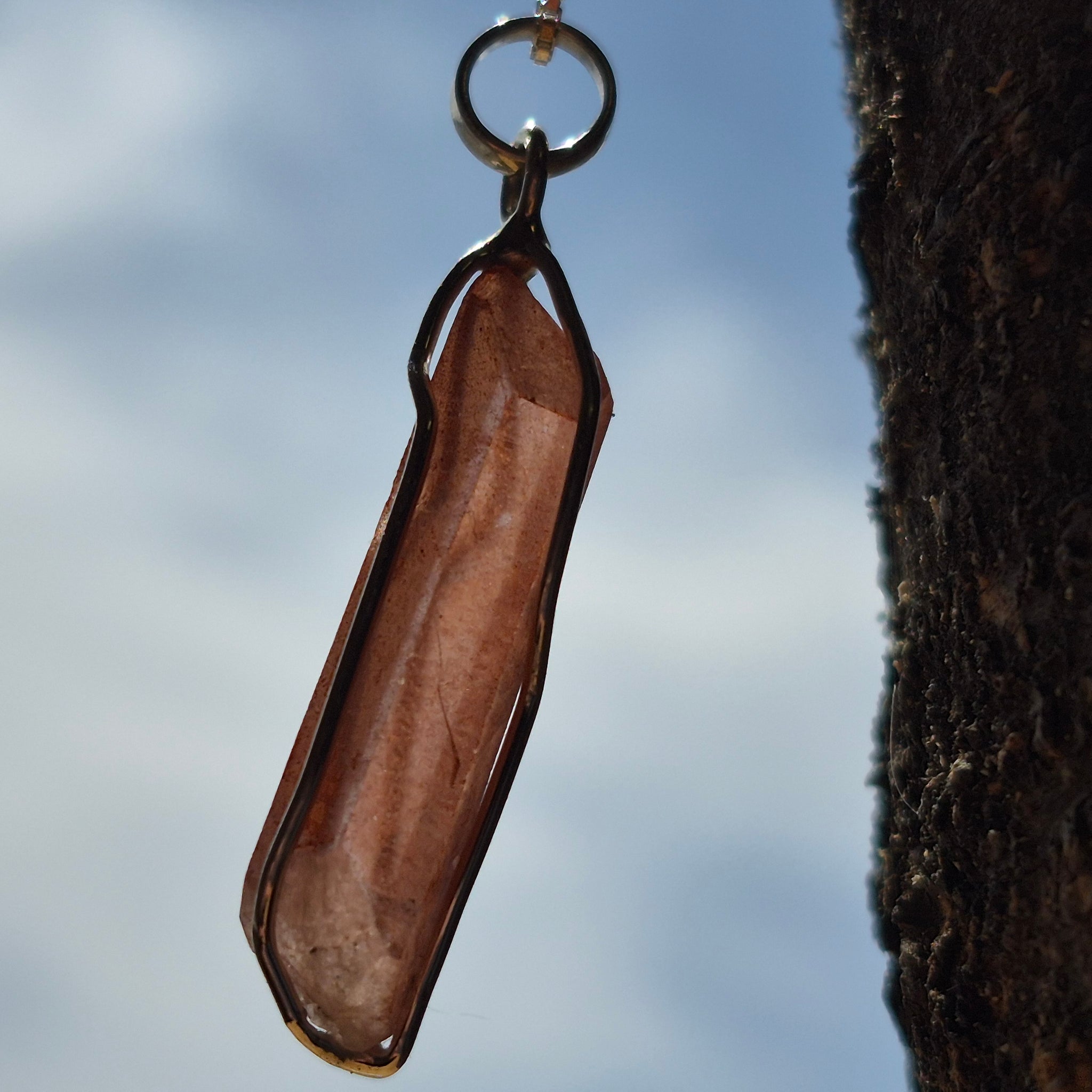 Pendentif en argent Cristal de quartz naturel Cristal de quartz, mine du Québec Pendentifs cristal de quartz Lémurien de haute qualité, teinte tangerine. Les pointes de Cristal de quartz...