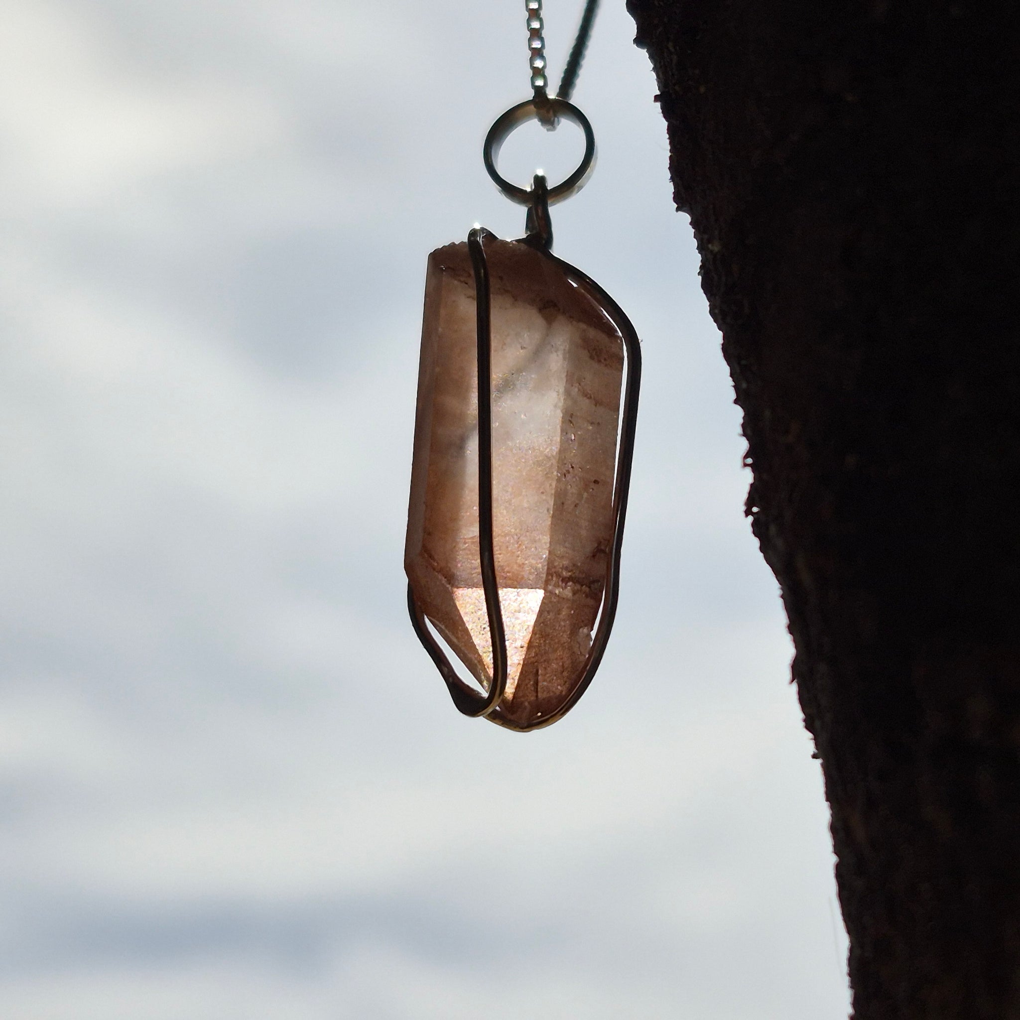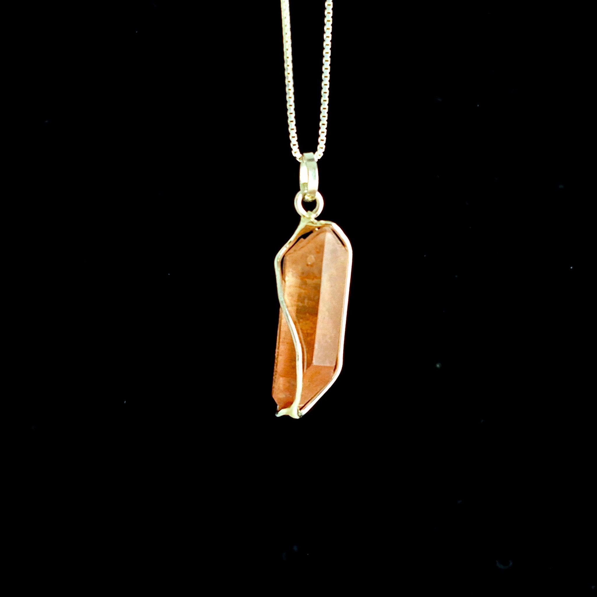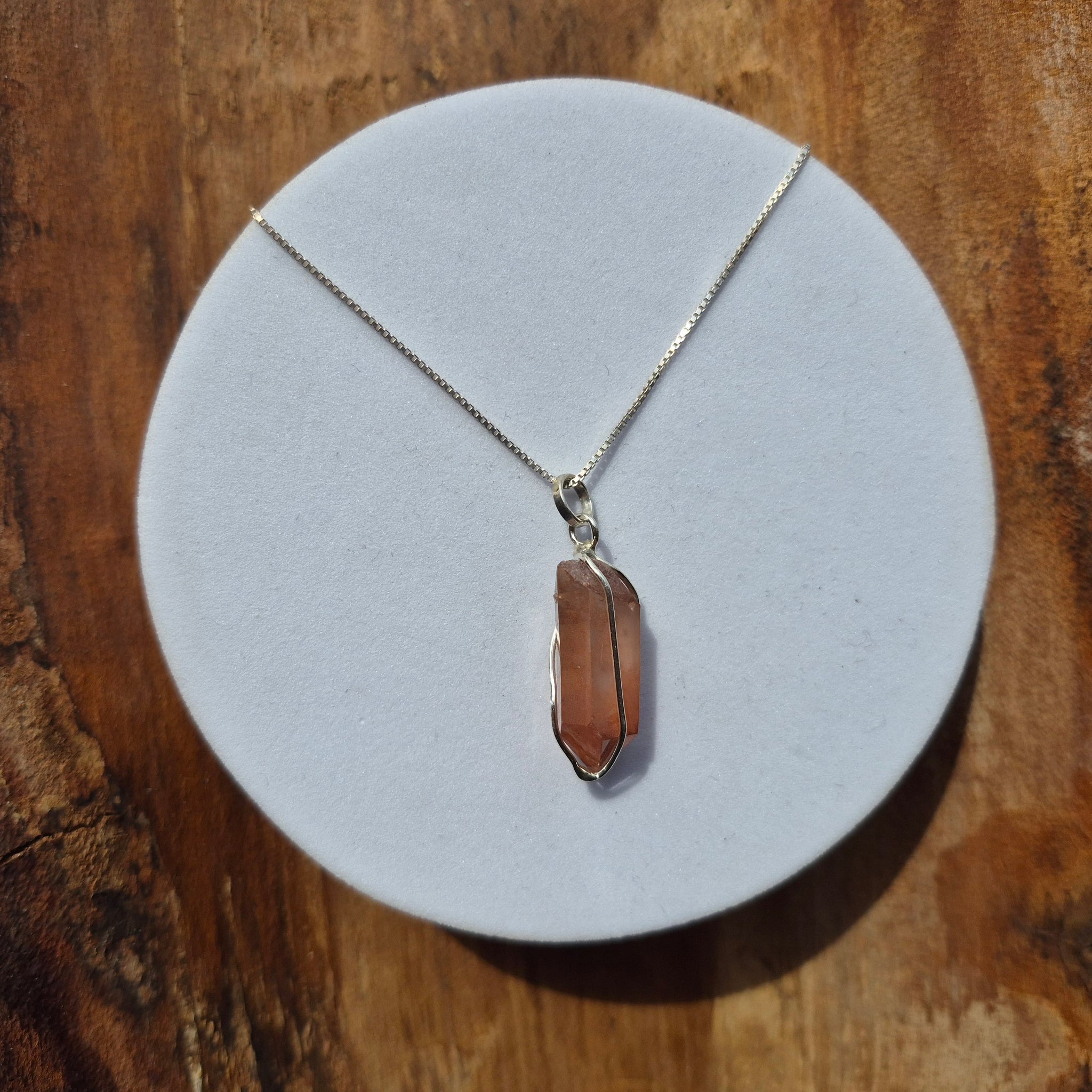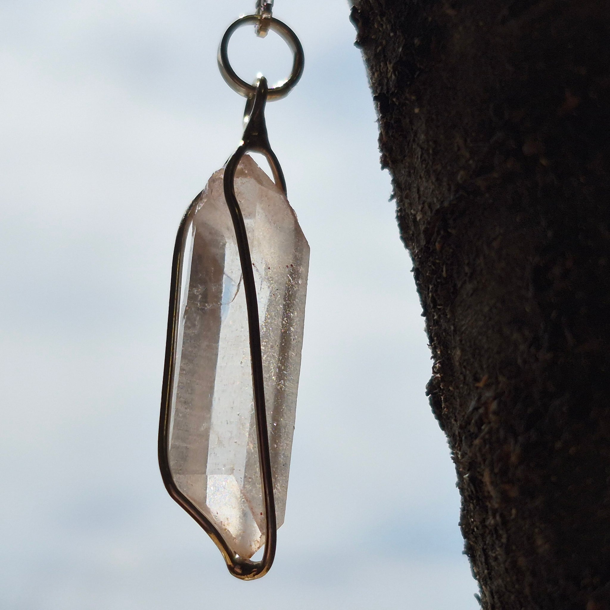 Pendentif en argent Cristal de quartz naturel Cristal de quartz, mine du Québec Pendentifs cristal de quartz Lémurien de haute qualité, teinte tangerine. Les pointes de Cristal de quartz...