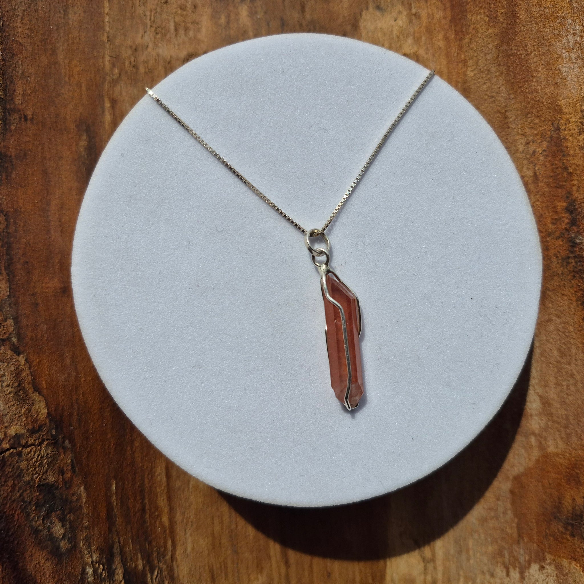 Pendentif en argent Cristal de quartz naturel Cristal de quartz, mine du Québec Pendentifs cristal de quartz de haute qualité, teinte tangerine. Les pointes de Cristal de quartz sont...
