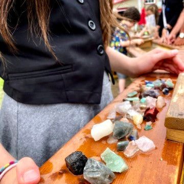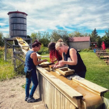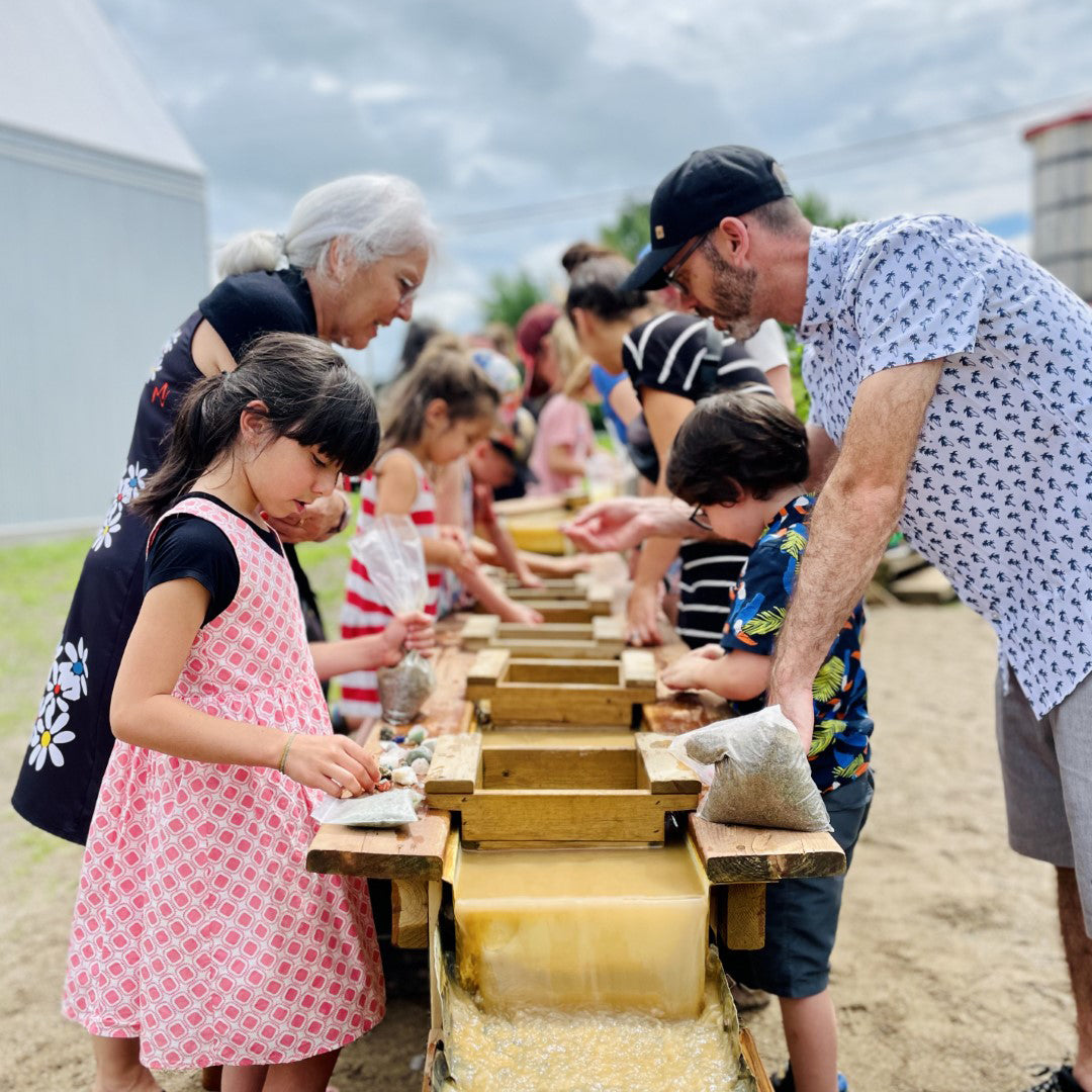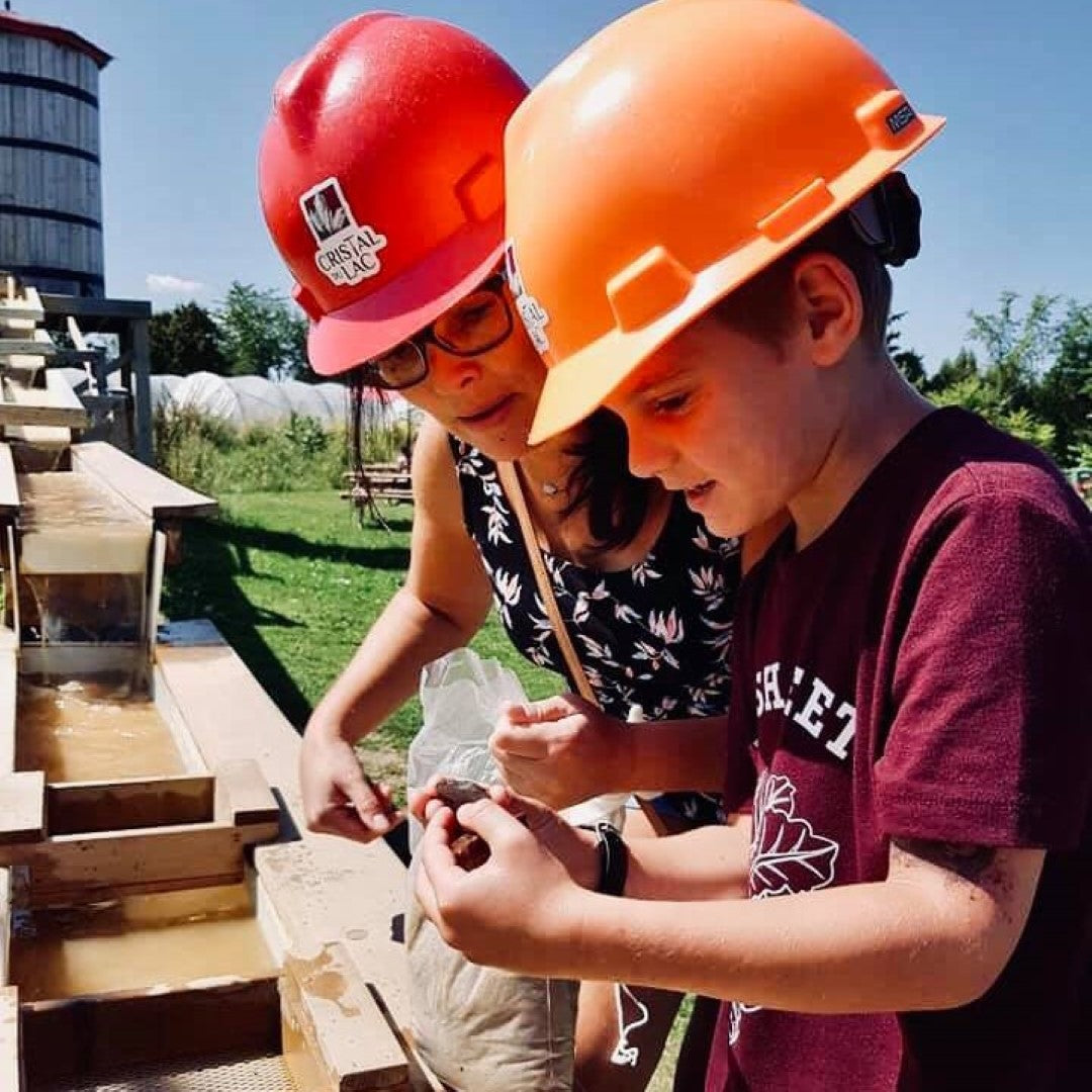 Comme à l’époque du Klondike, tamisez votre sac de sable dans le lavoir à minéraux : une chute d’eau de 12 pieds. Des trésors exceptionnels brilleront sous vos yeux et vous pourrez ensuite identifier vos pierres précieuses et semi-précieuses à l’aide d’une affiche Cristal du Lac.