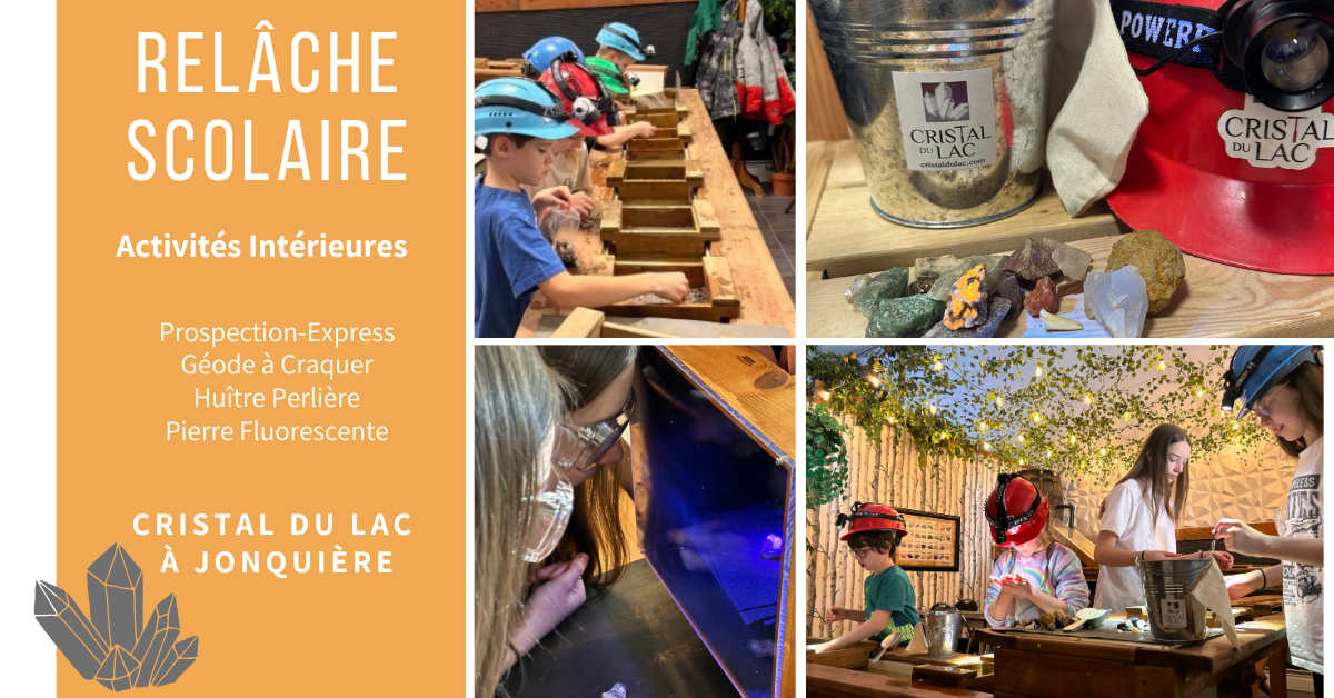 Vivez les activités de Cristal du Lac,: Prospection-Express, Extraction-Perlière, Géode à craquer. Une fête sous le thème des cristaux et minréraux, accompagné d'un animateur.