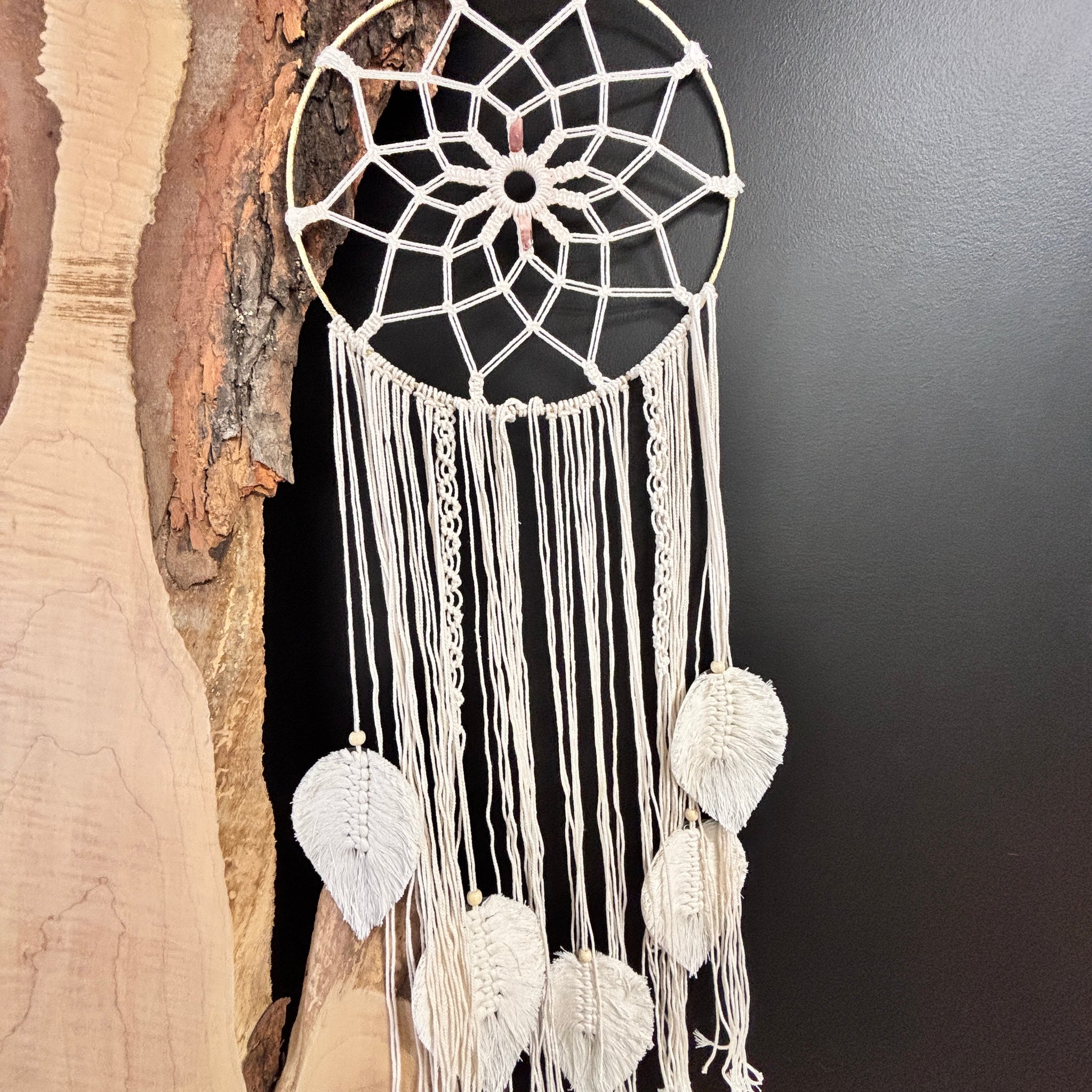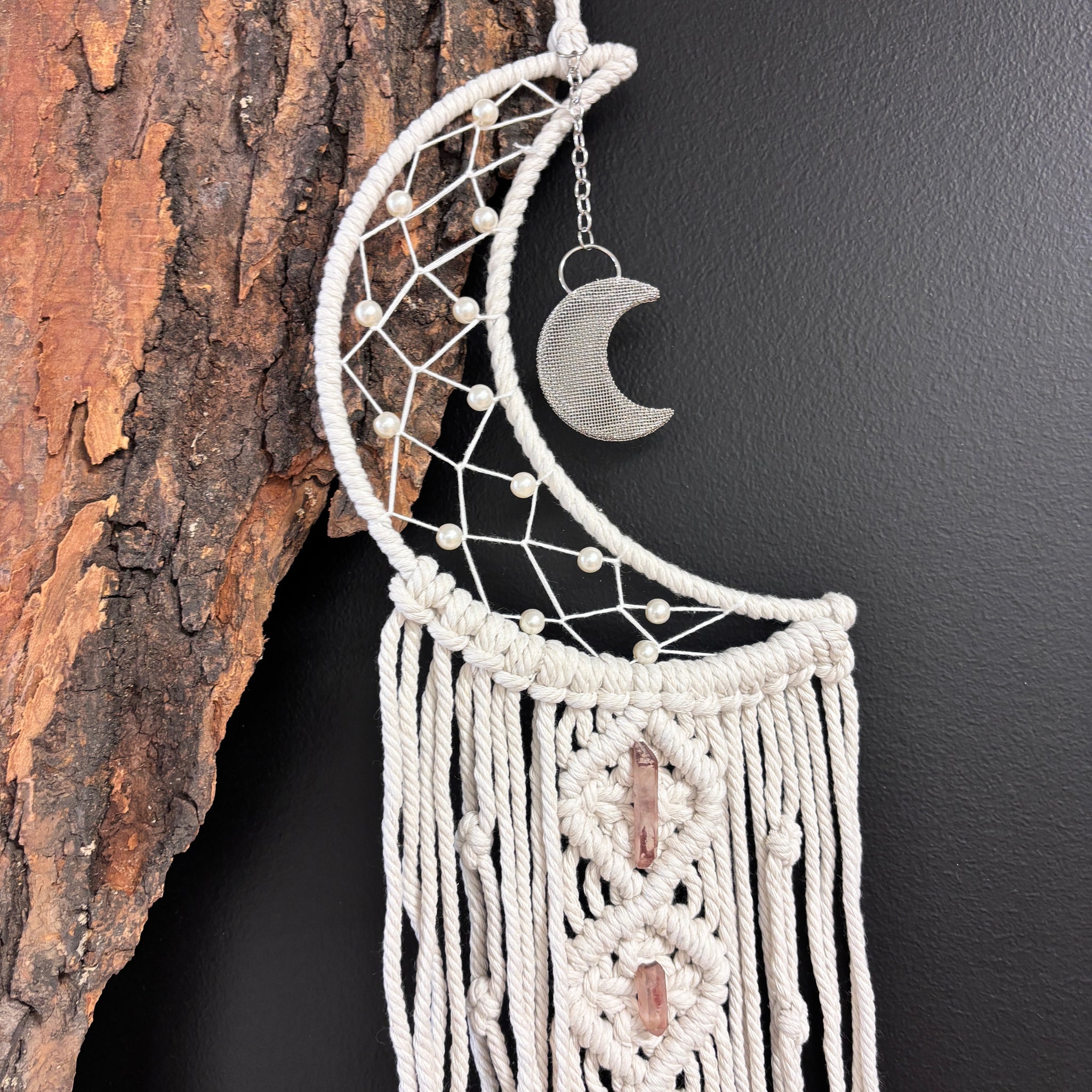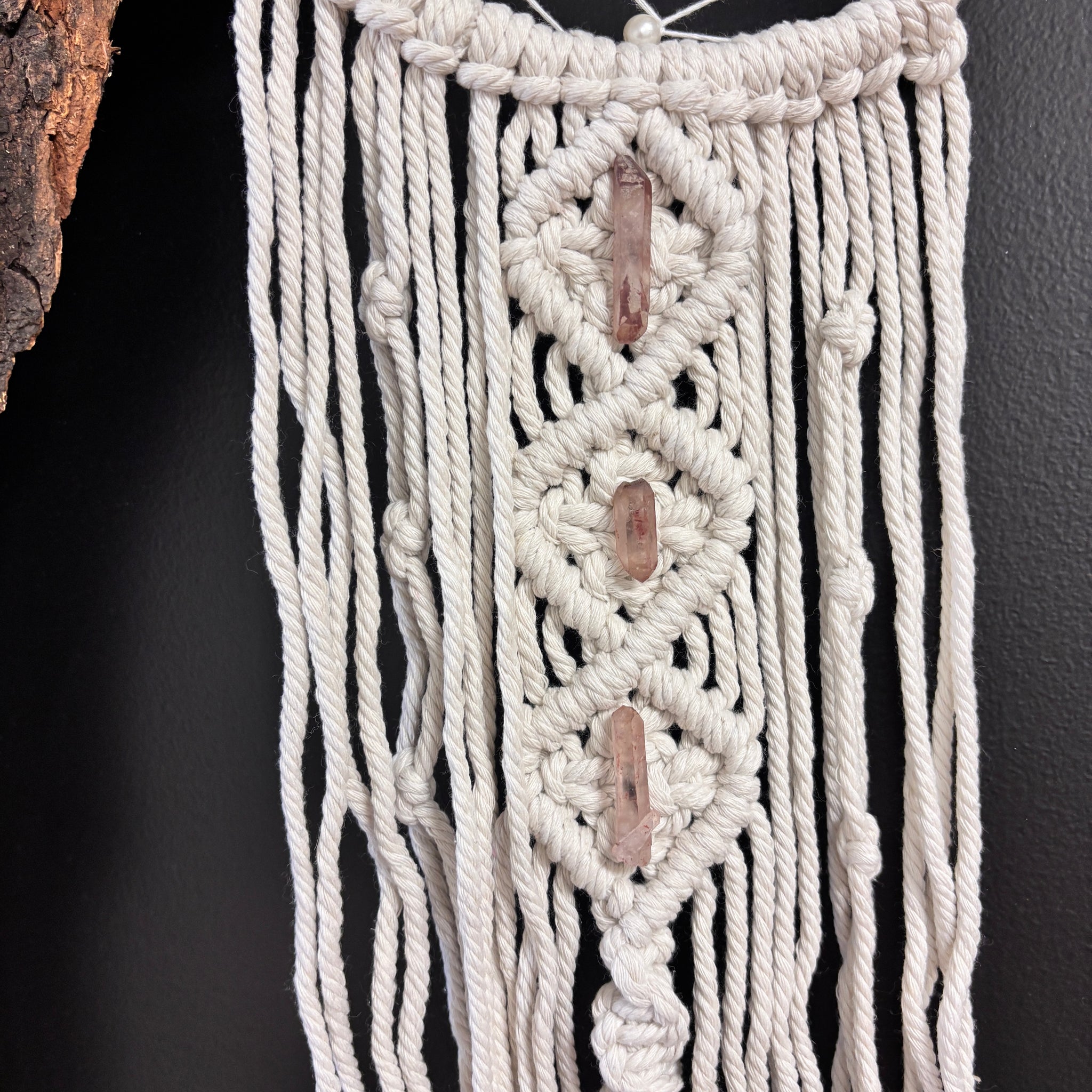 Macramé grand format avec cristaux Un chef-d’œuvre artisanal qui unit matière et énergie. Ce macramé de grande dimension est entièrement noué , puis enrichi de cristaux authentiques intégrés directement dans...